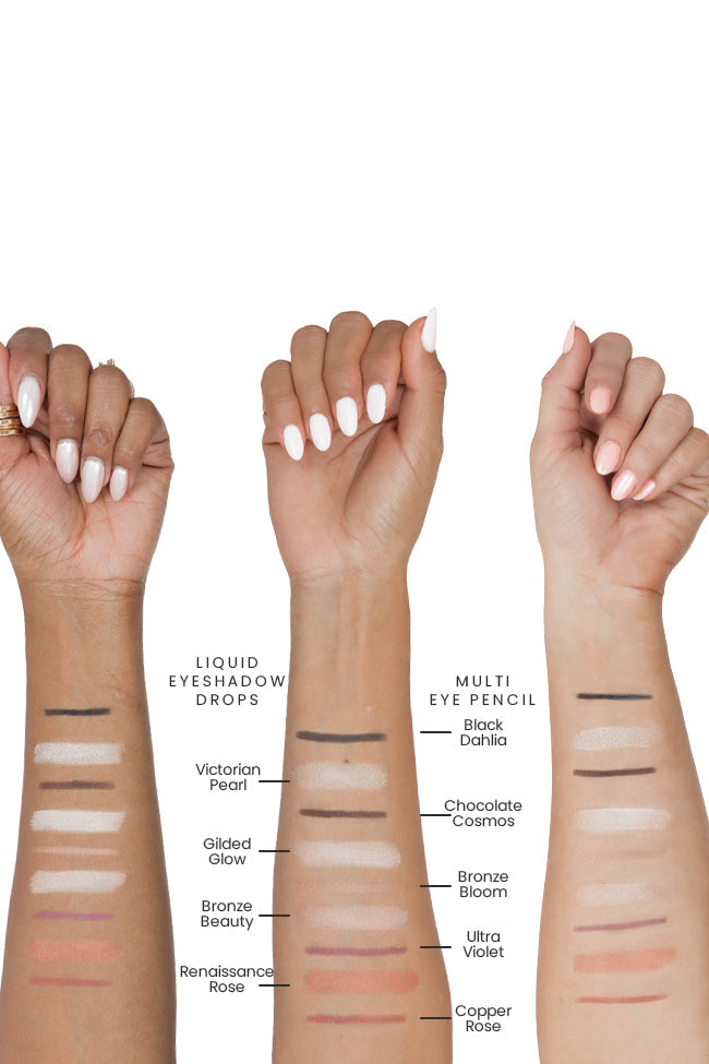 Keep the spotlight on you with our NEW Radiant Bloom Eyeshadow Drops! Our weightless, liquid-to-powder eyeshadows apply and blend seamlessly for quick and easy eye-looks that last all day, no creasing and no fallout! The neutral shades are buildable and can be worn alone, layered to create fun eye palettes and paired with our Multi Eye Pencils. These eyeshadows elevate the everyday makeup look. Our Renaissance Rose shade is a warm rose gold with shimmer!