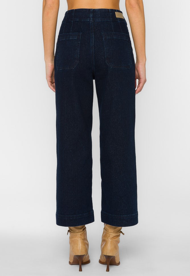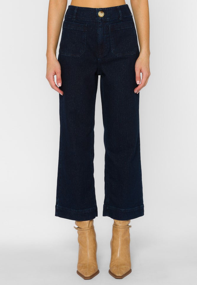 👖✨ Alyx Wide Leg Cropped Jeans – Dark Indigo (With Subtle Sparkle) ✨💫
