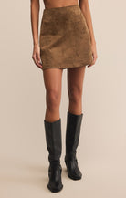 Buttery soft, perfectly tailored. This faux suede mini hugs just right with a clean zip-back design, made to pair with your coziest sweaters and favorite boots.