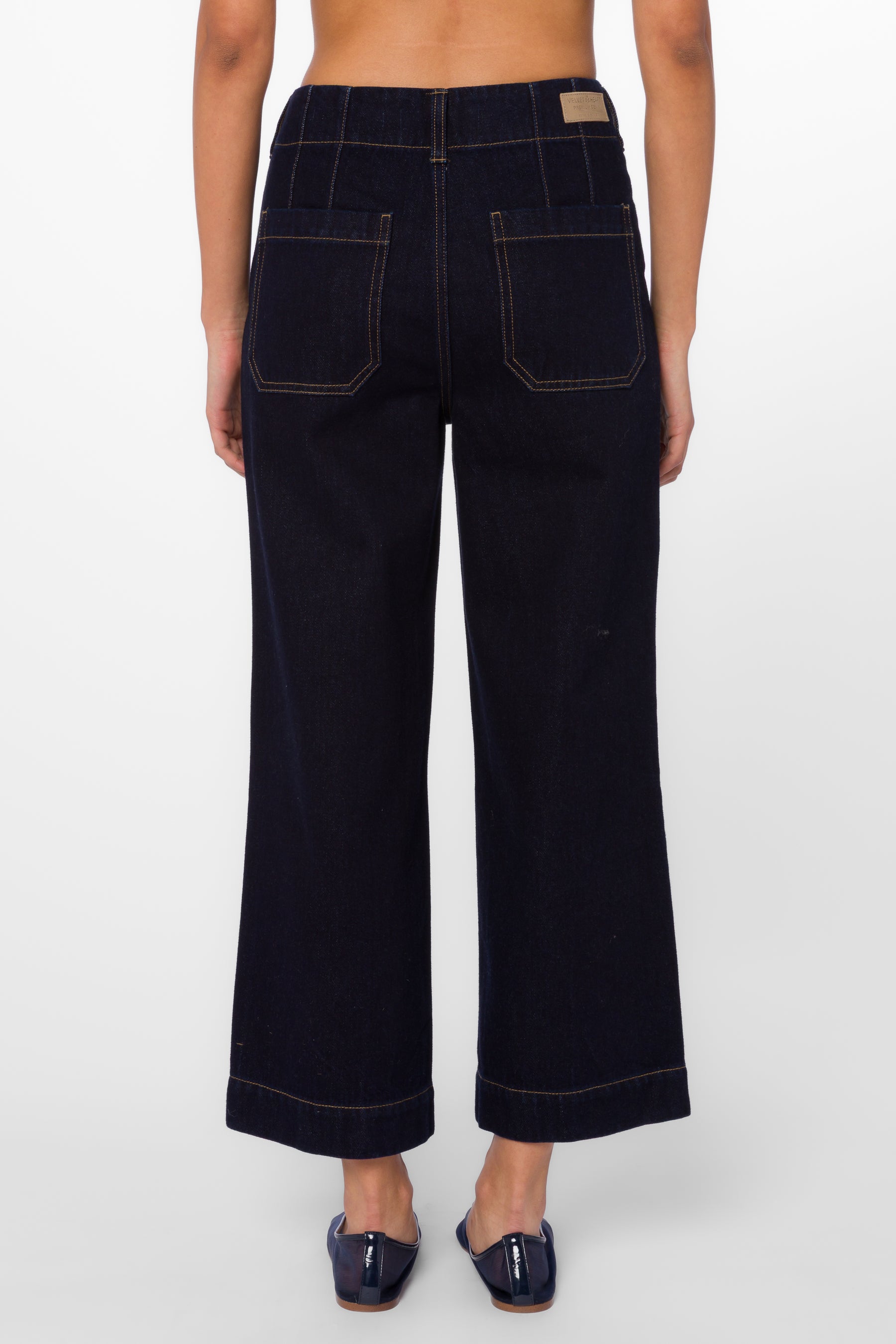 • Wide leg, relaxed flared crop denim