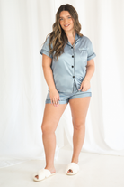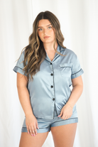 Baby Blue with Black Trim Satin Pajamas (Online Exclusive)