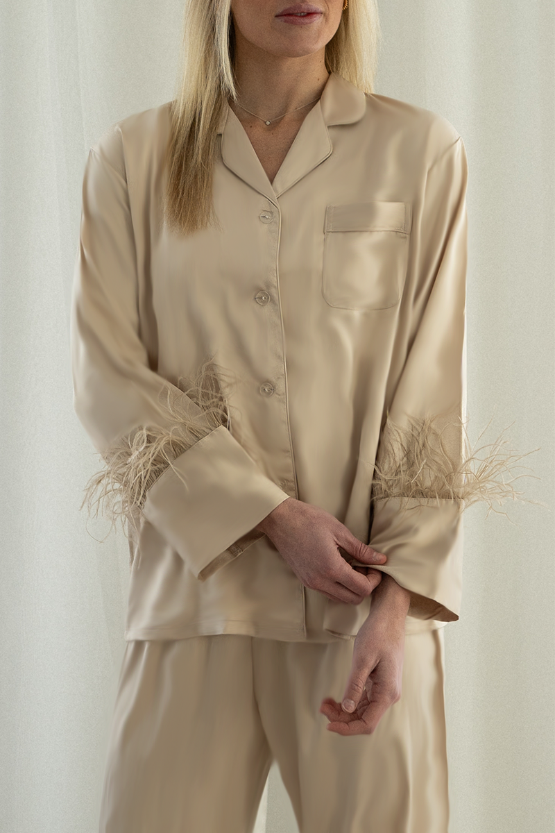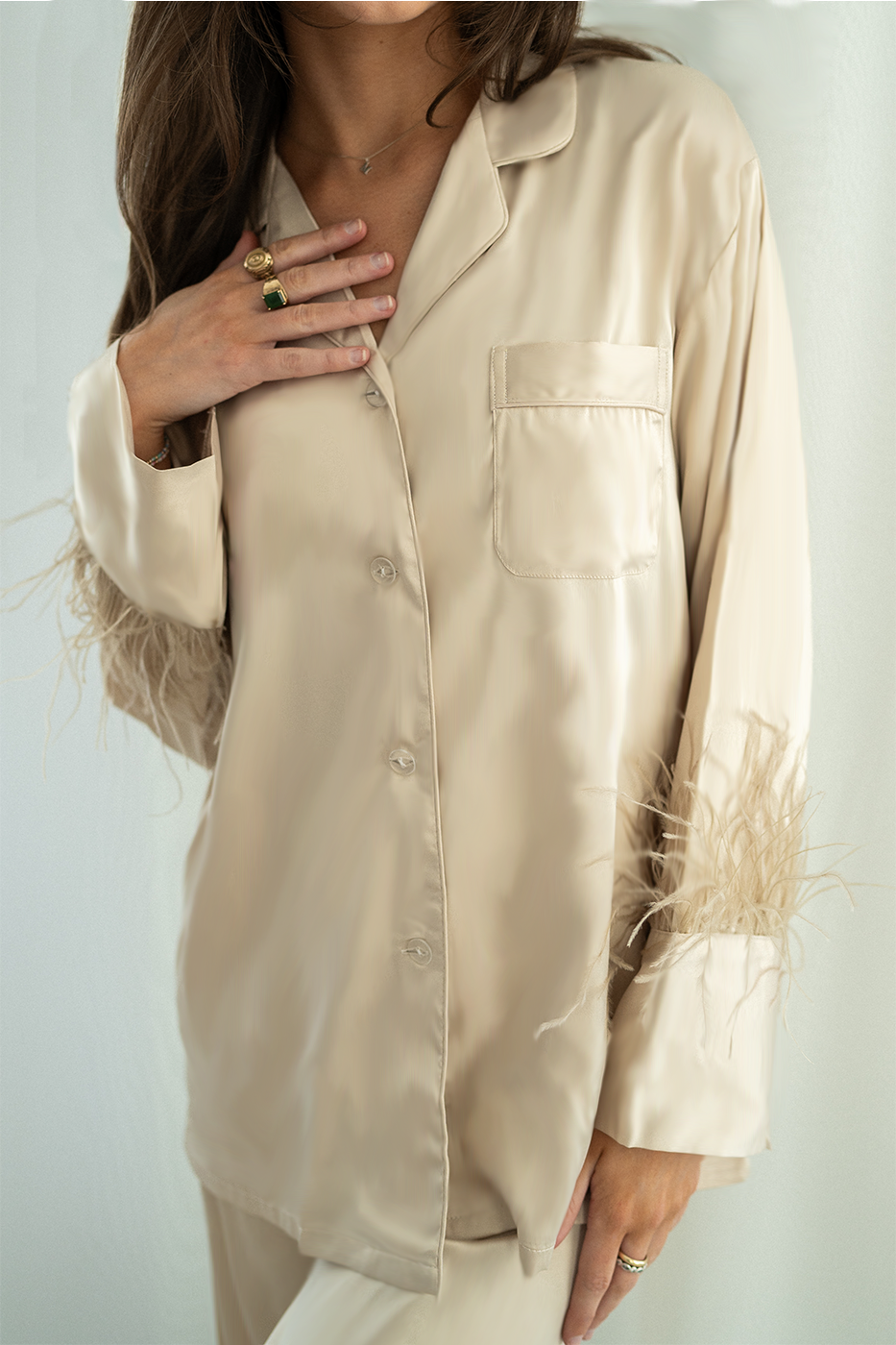 Champagne Feather Satin Pants Set (Online Exclusive)