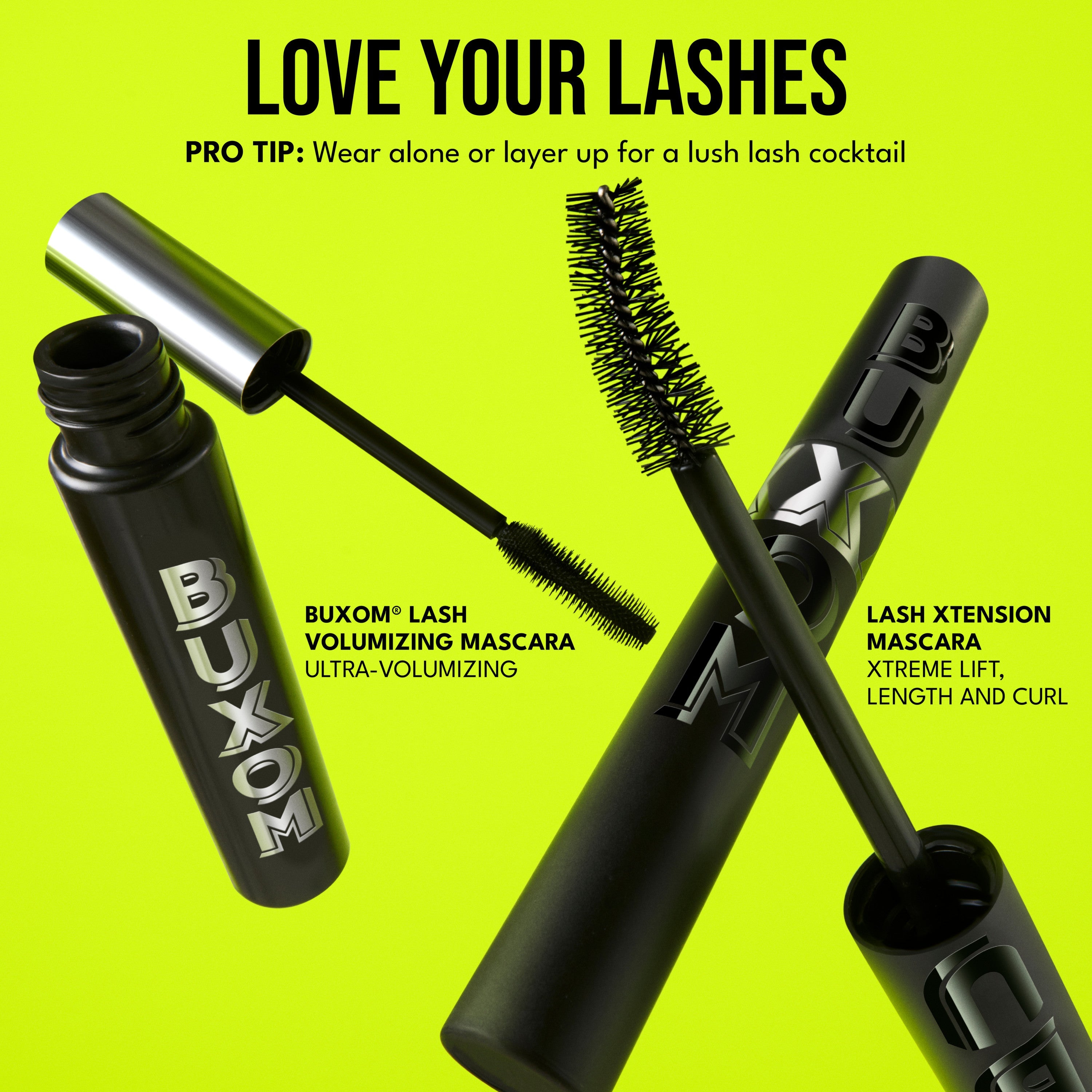 Lash extensions in a bottle! BUXOM's Lash Xtension Lift Mascara gives long-lasting lash lift length and quick-build 24HR volume*. The special star-fibered brush and natural curved wand give an eye-opening effect while tubing technology allows lash-loving tug-free removal.