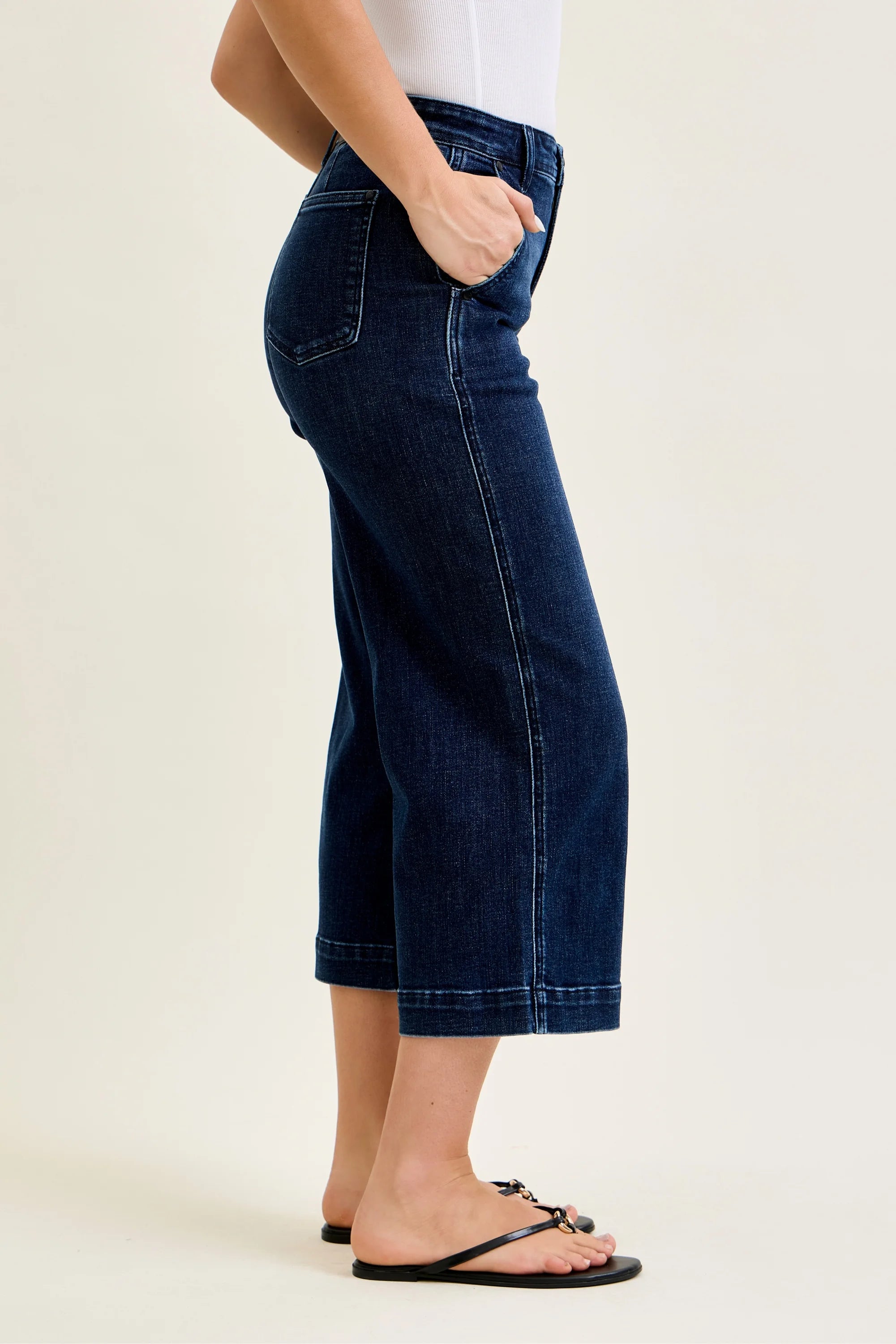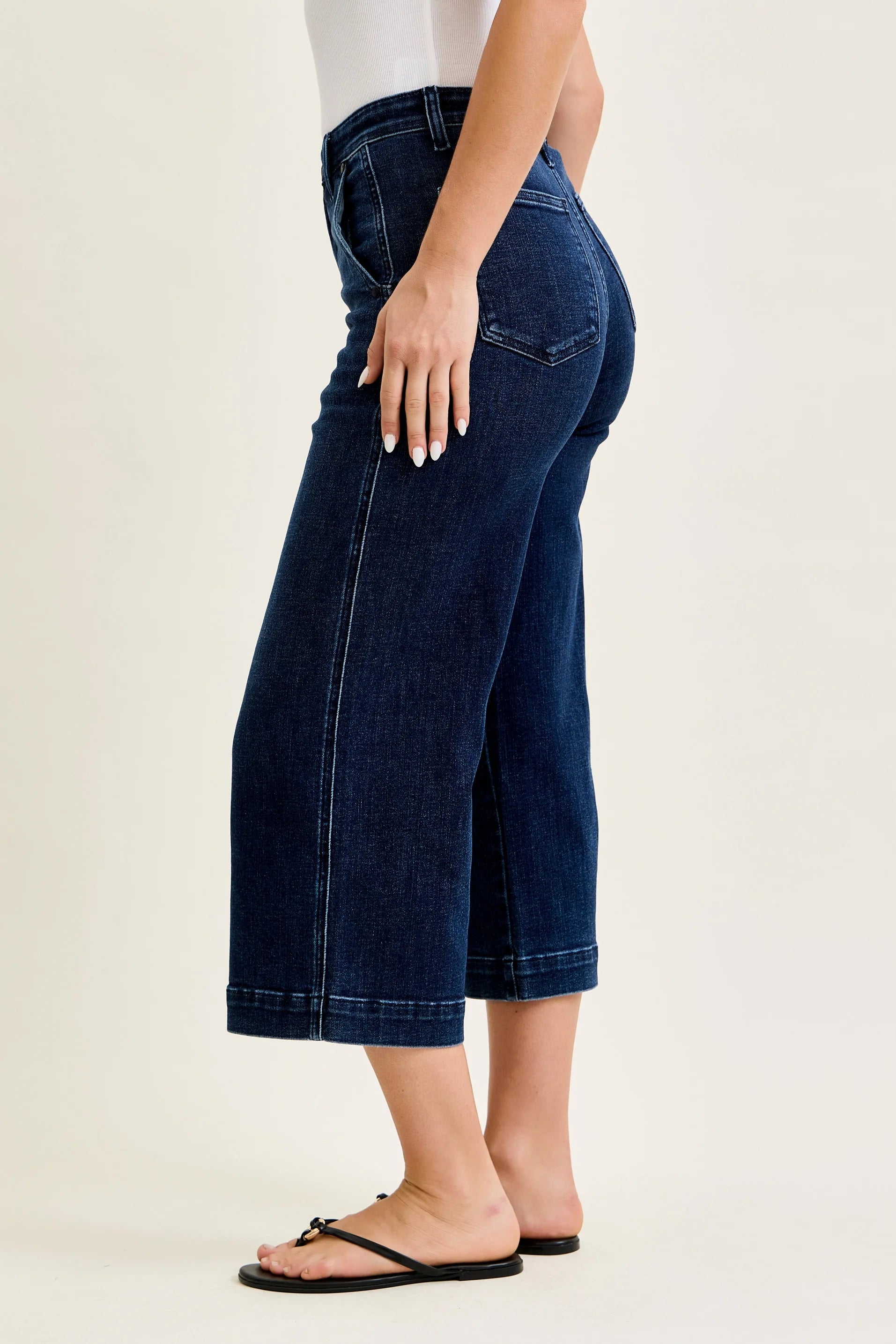 Meet your new wear-everywhere denim—the Marina Wide Leg. Designed with a flattering high rise and a modern wide leg silhouette, this pair gives you that polished, trouser-inspired look while still feeling soft, stretchy, and easy to move in.