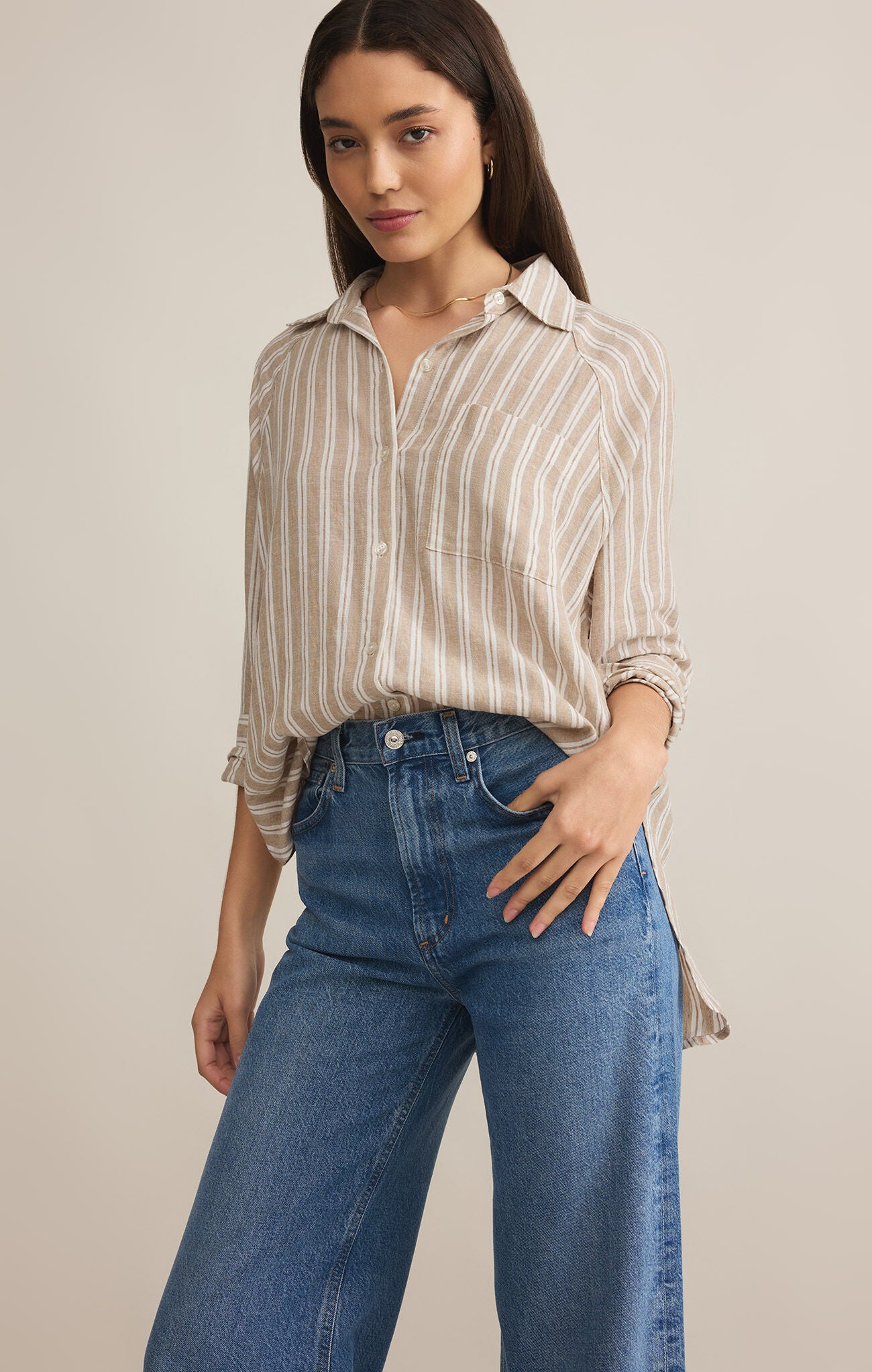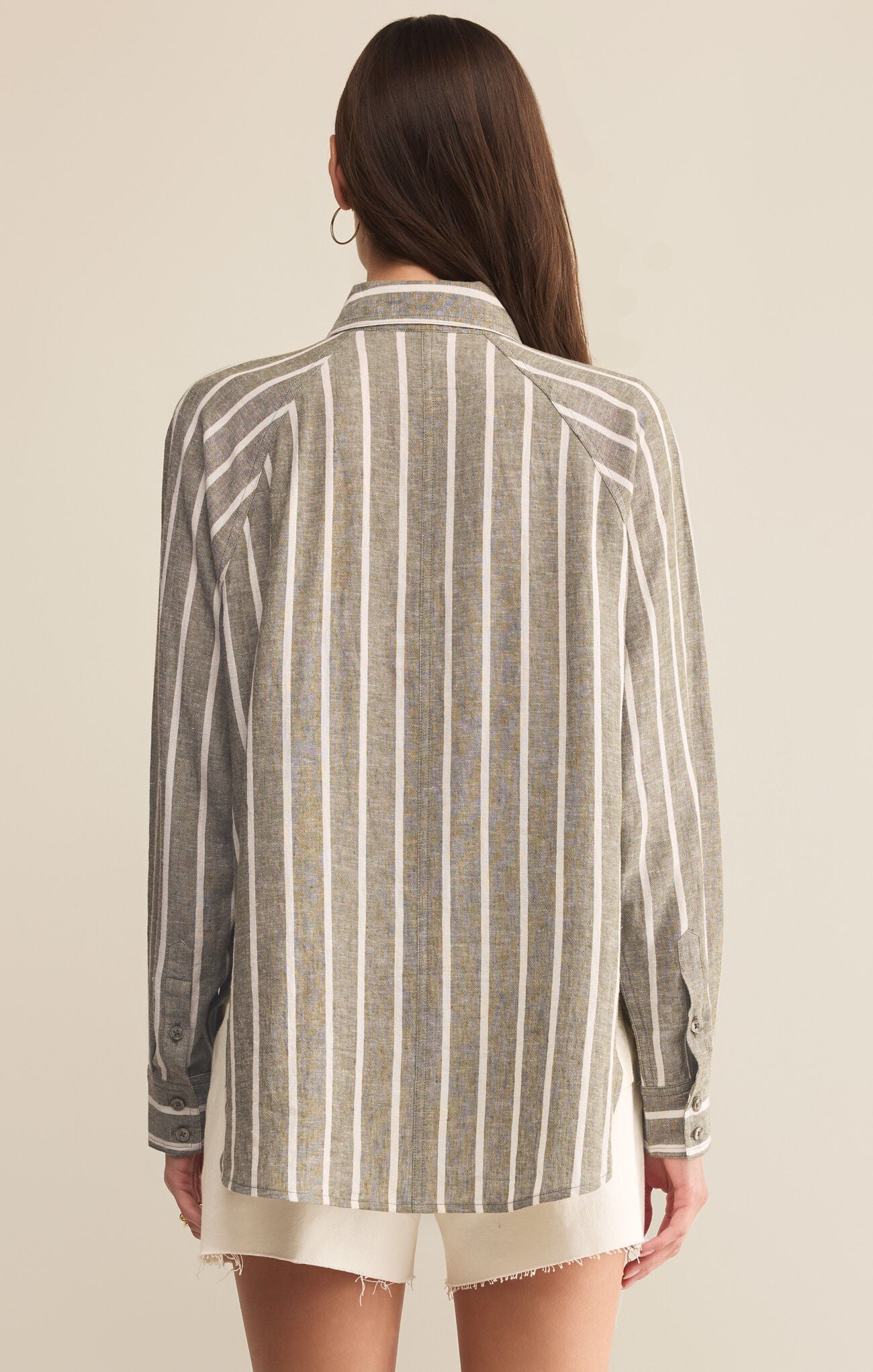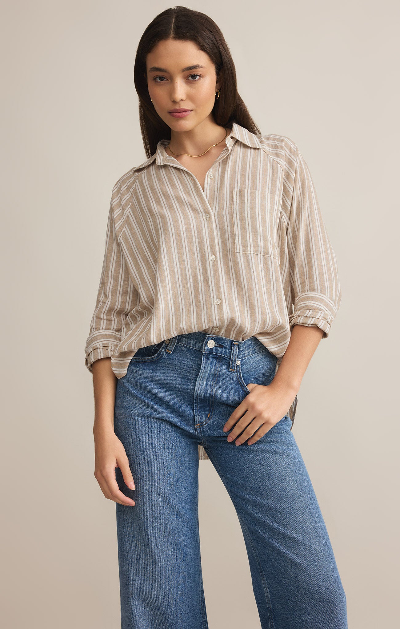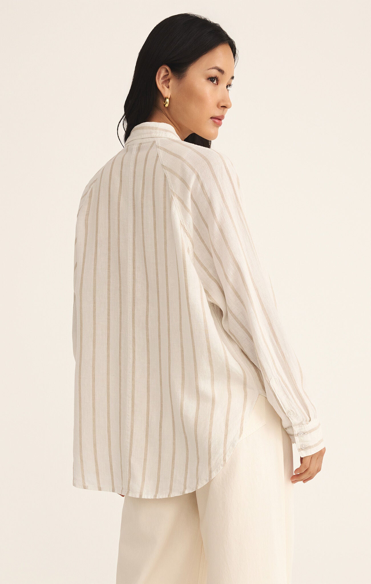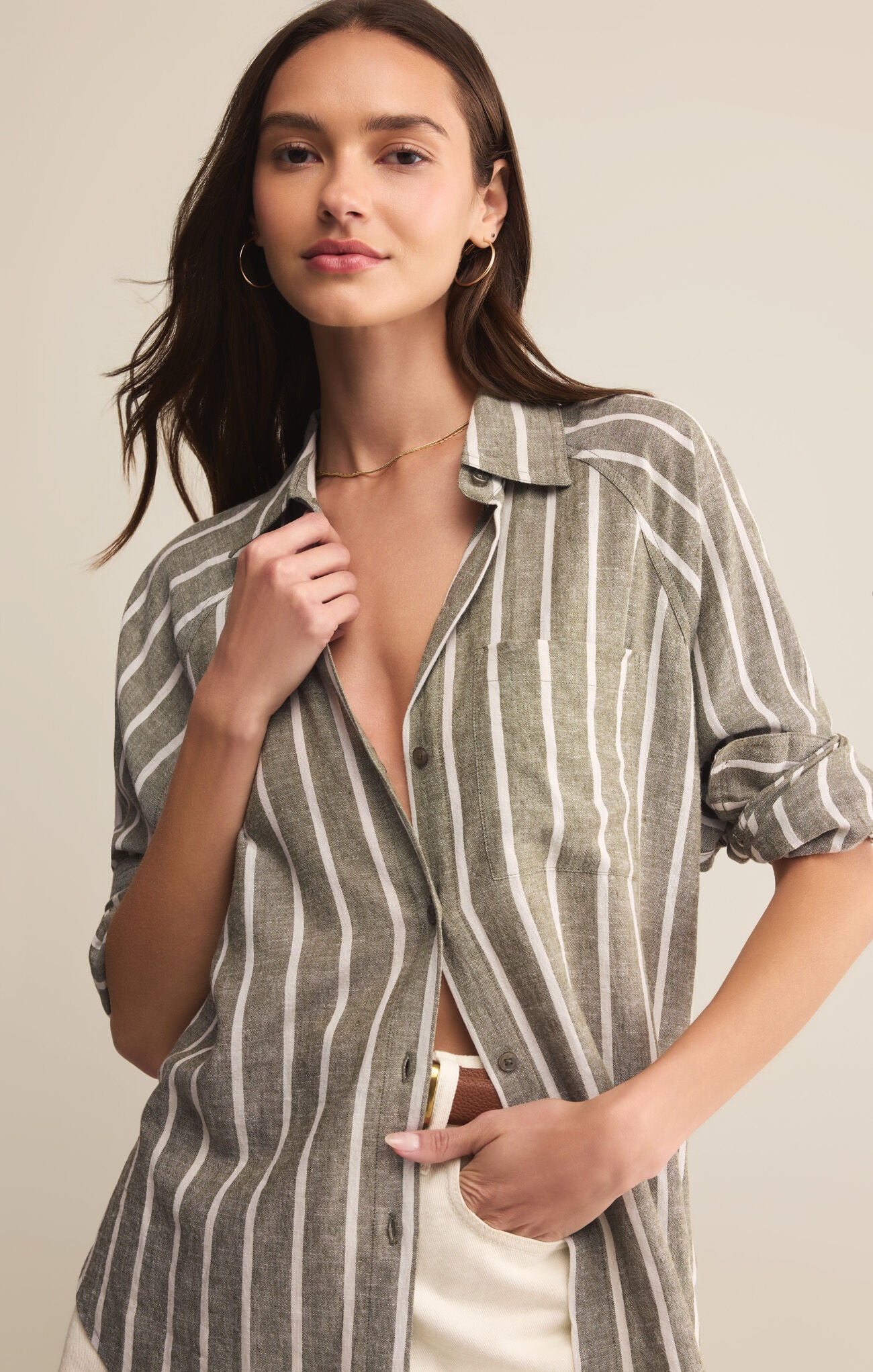 You'll love the easy, breezy comfort of this classic stripe button-up. The Perfect Striped Linen Top has that soft, drapey feel you look for when the temps start rising. Throw it on over a tank, swim suit or bralette for an effortless look no matter where you are.