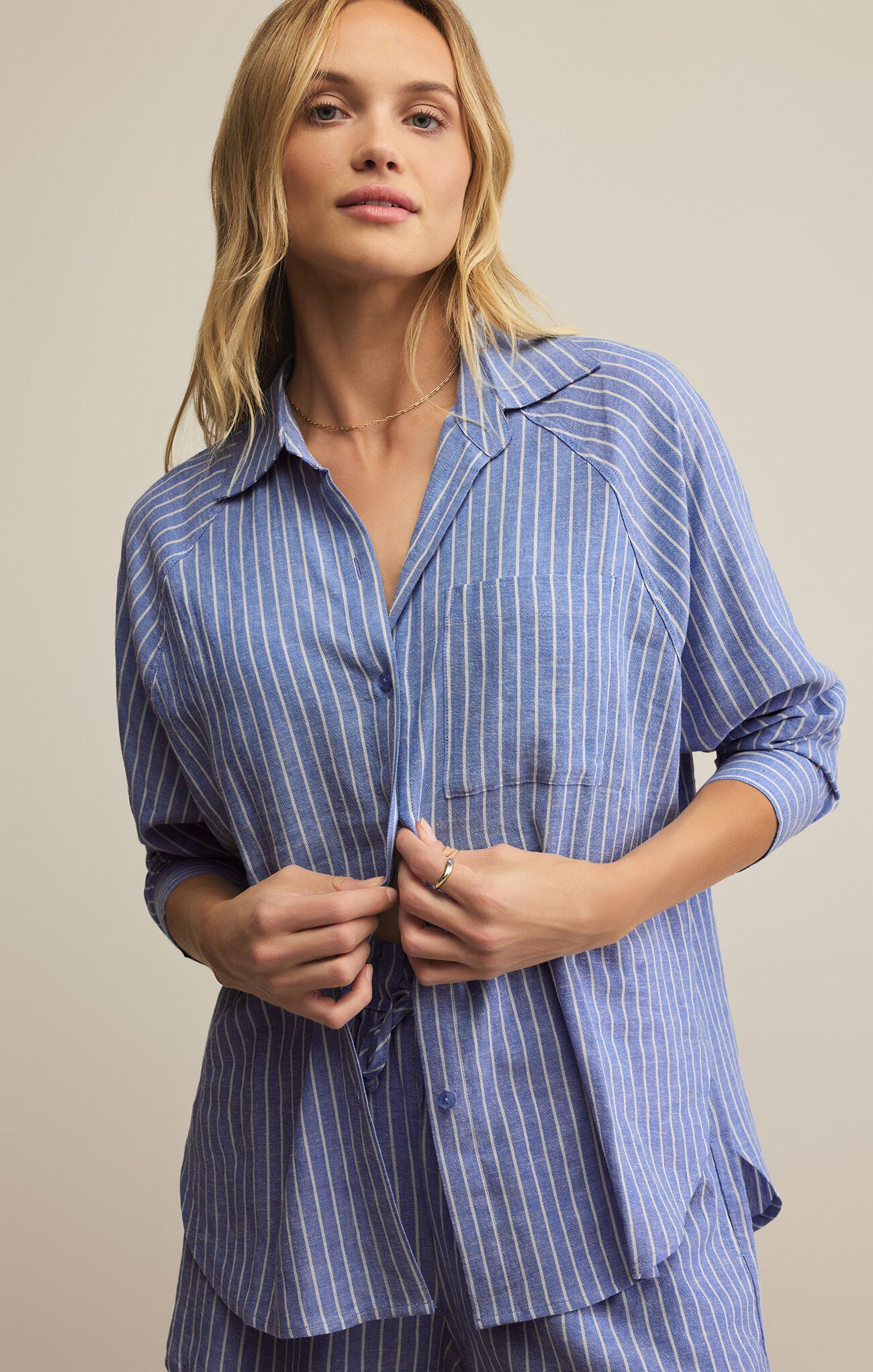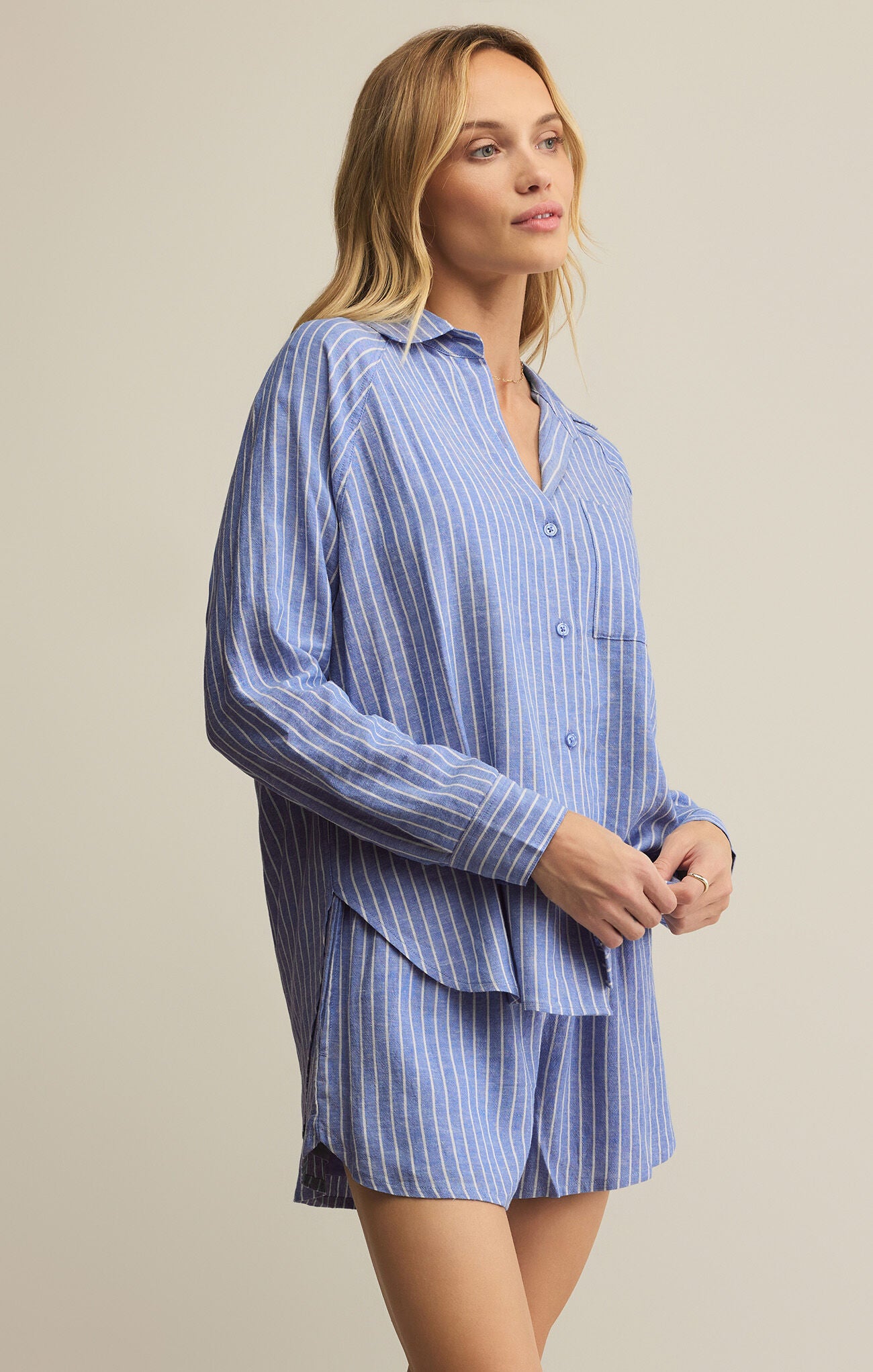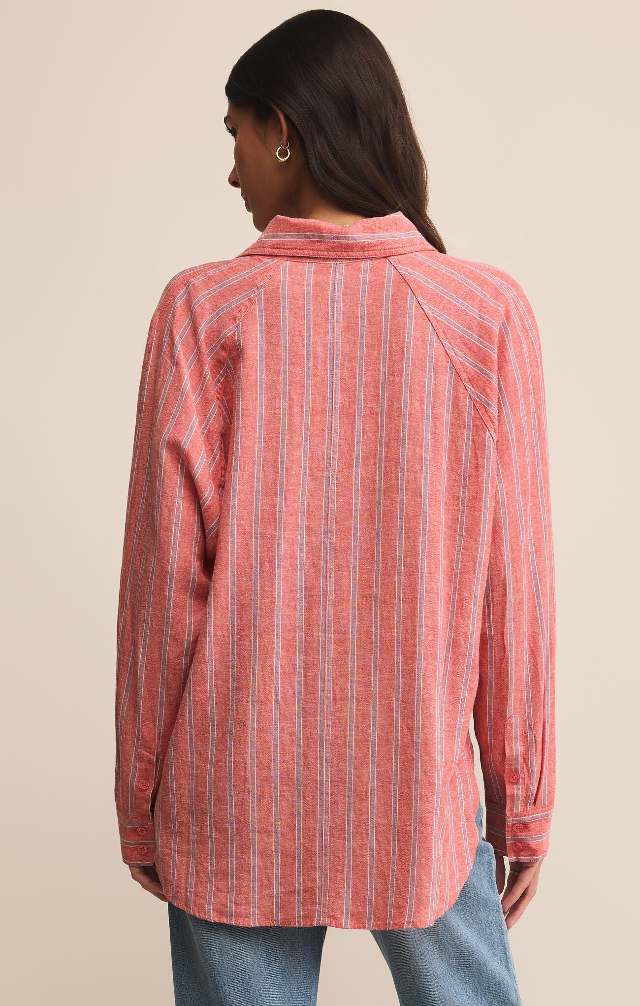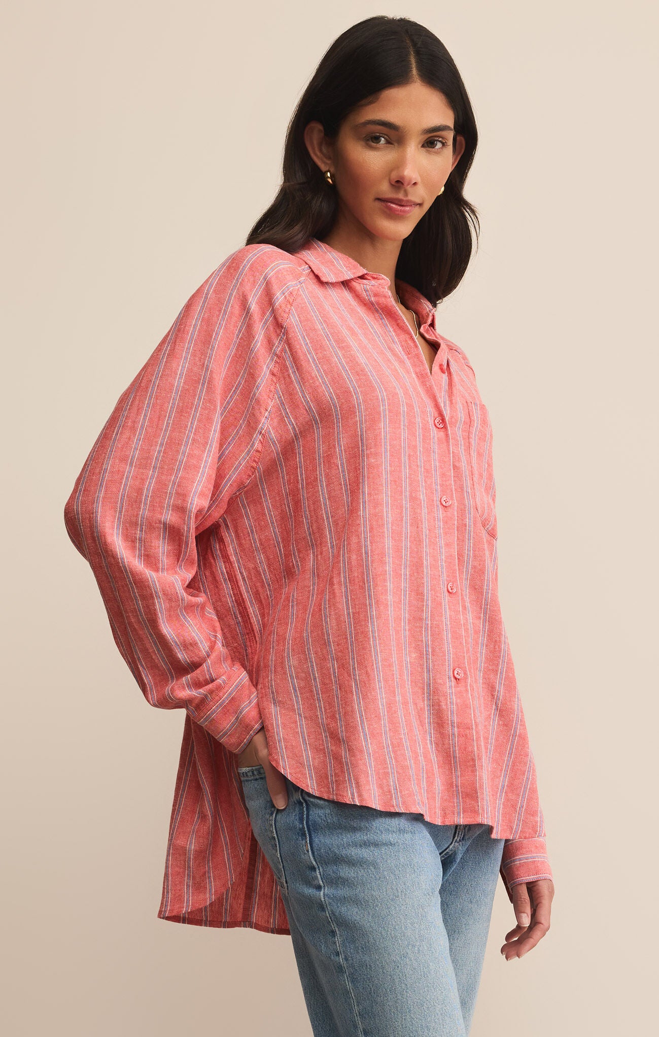You'll love the easy, breezy comfort of this classic stripe button-up. The Perfect Striped Linen Top has that soft, drapey feel you look for when the temps start rising. Throw it on over a tank, swim suit or bralette for an effortless look no matter where you are.