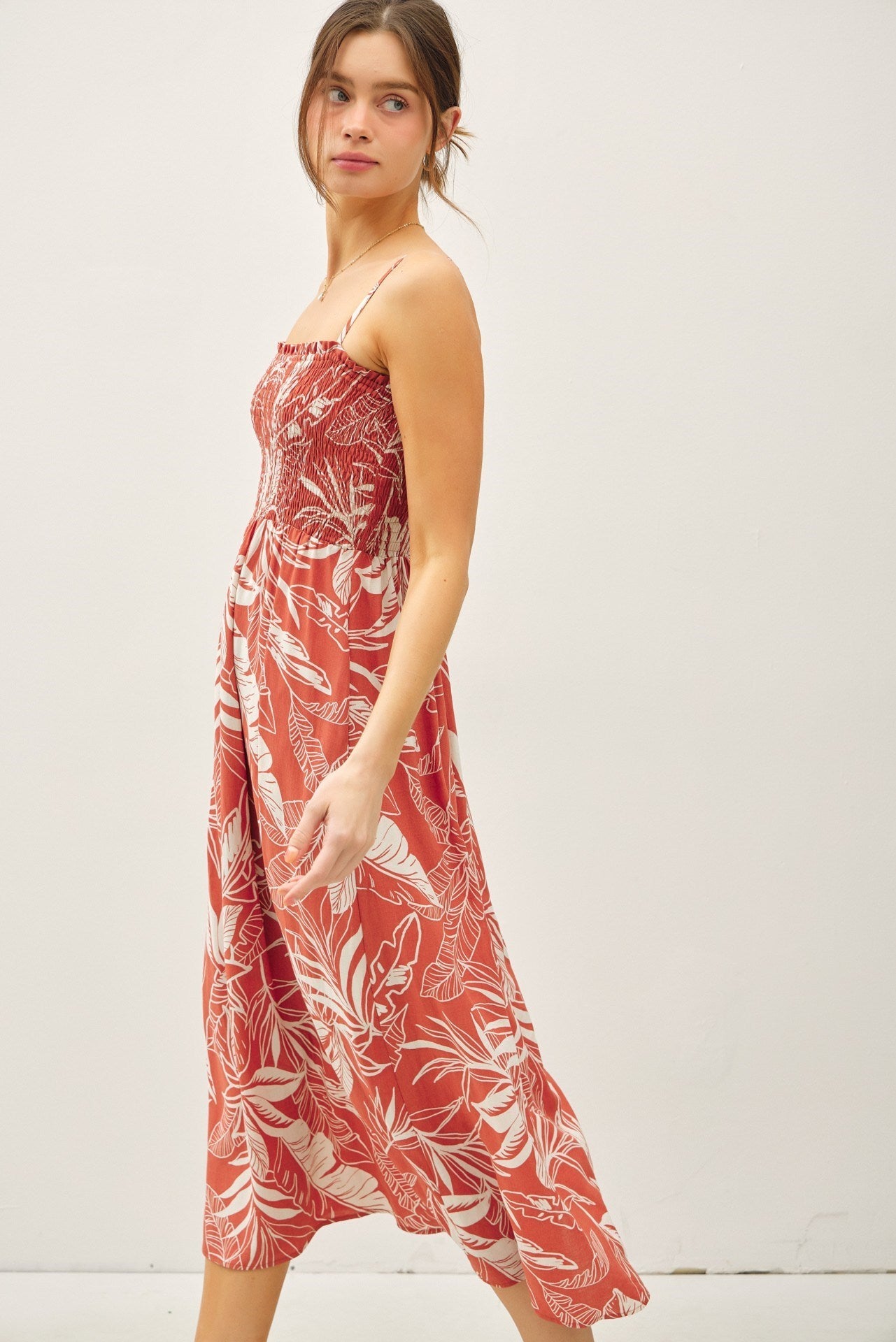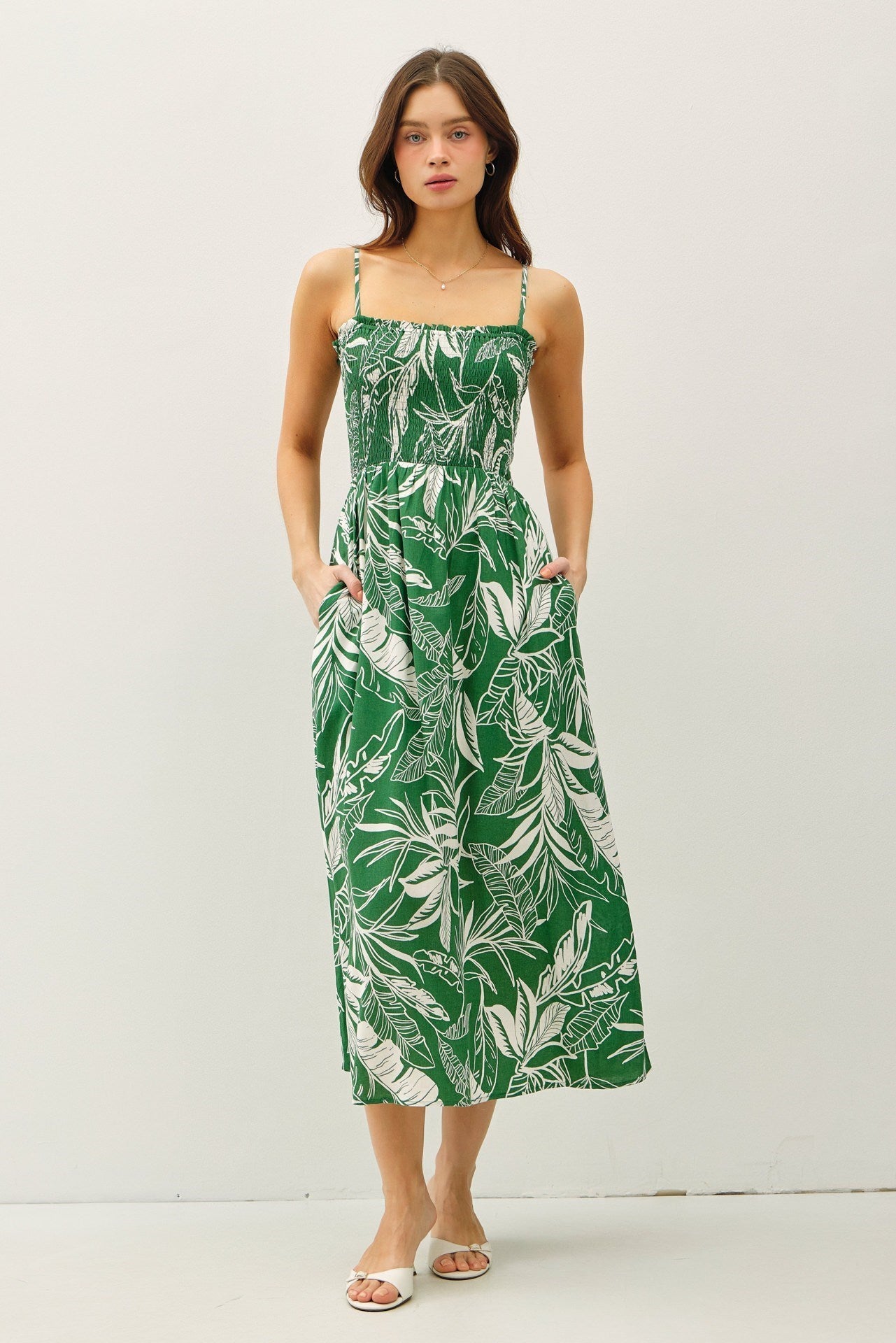 TROPICAL TOUCH SMOCKED MIDI DRESS πŸŒ΄β˜€οΈ
