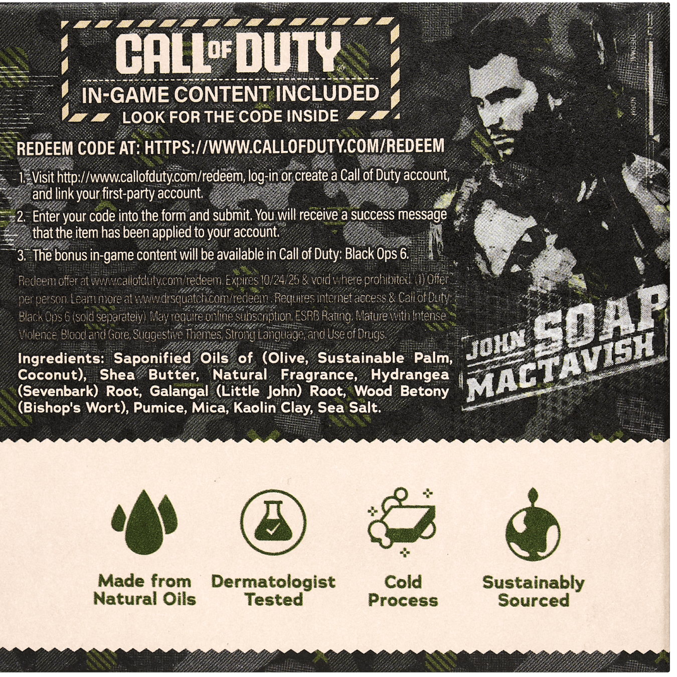Prep for your mission with Sarge Soap – inspired by Lt. “Soap” MacTavish and crafted to keep you ready for action
