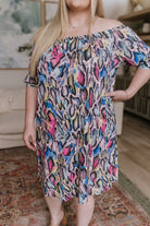 Be wild and stand out with this Kind of Wild Animal Print Dress! Made from easy to wear bulgari fabric, it features an elasticated neckline, a wear-on-or-off-the-shoulder style, and functional sleeve ties for a perfect fit. Slip it on and turn heads!
