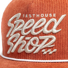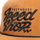 Inspired by the hats your grandpa used to wear, the Haste Hat is a deep-profile, structured snapback crafted from corduroy-style material. It features embroidered “Speed Shop” artwork, custom interior and exterior trims, and a contrast underbrim.