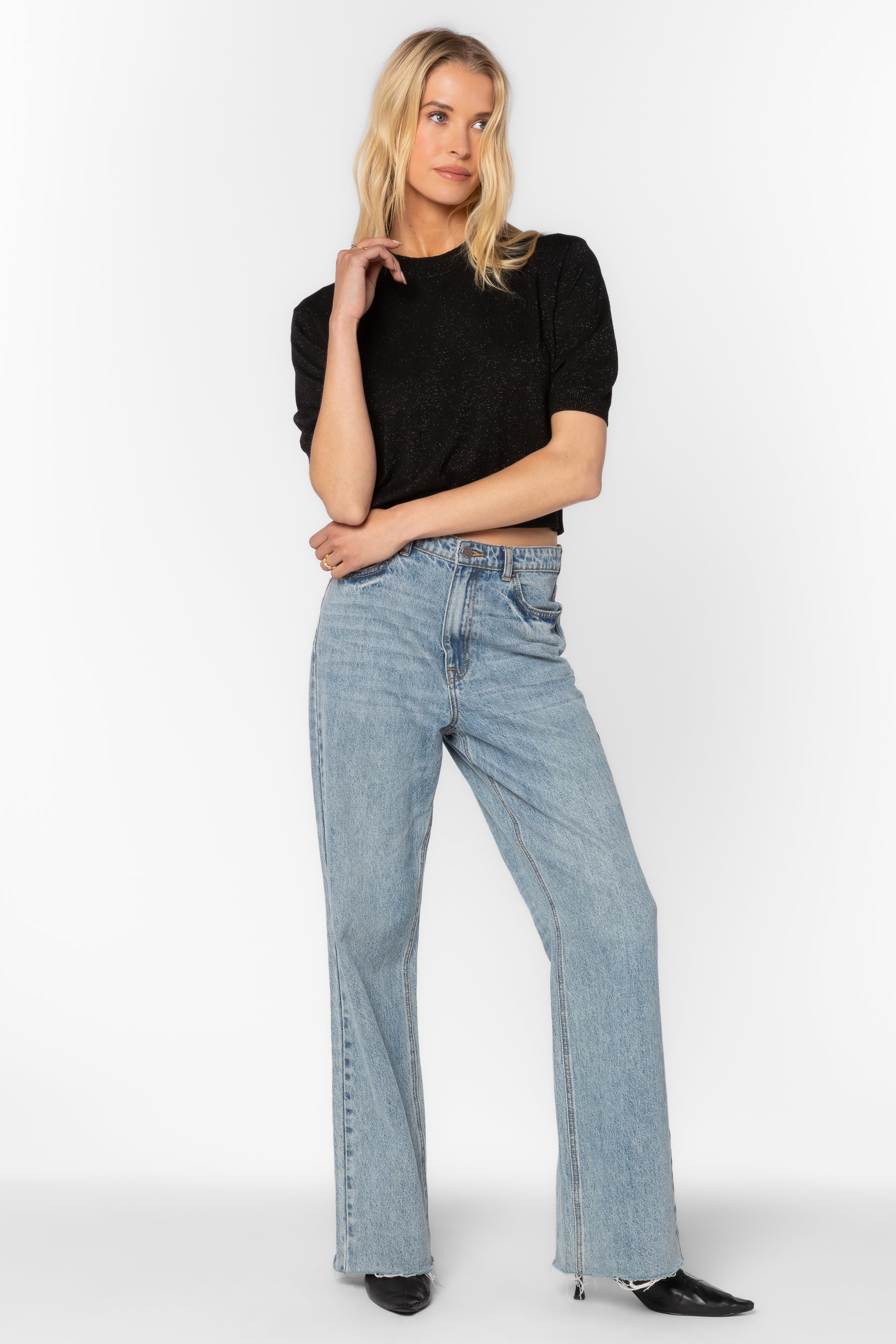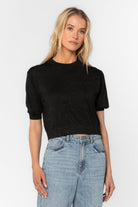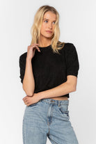 The perfect mix of cozy + glam just dropped. This short-sleeve cropped sweater is lightweight, breathable, and finished with metallic silver thread accents that catch the light in all the right ways. Think “effortless shimmer” for daytime chic or night-out glow. 🌙✨
