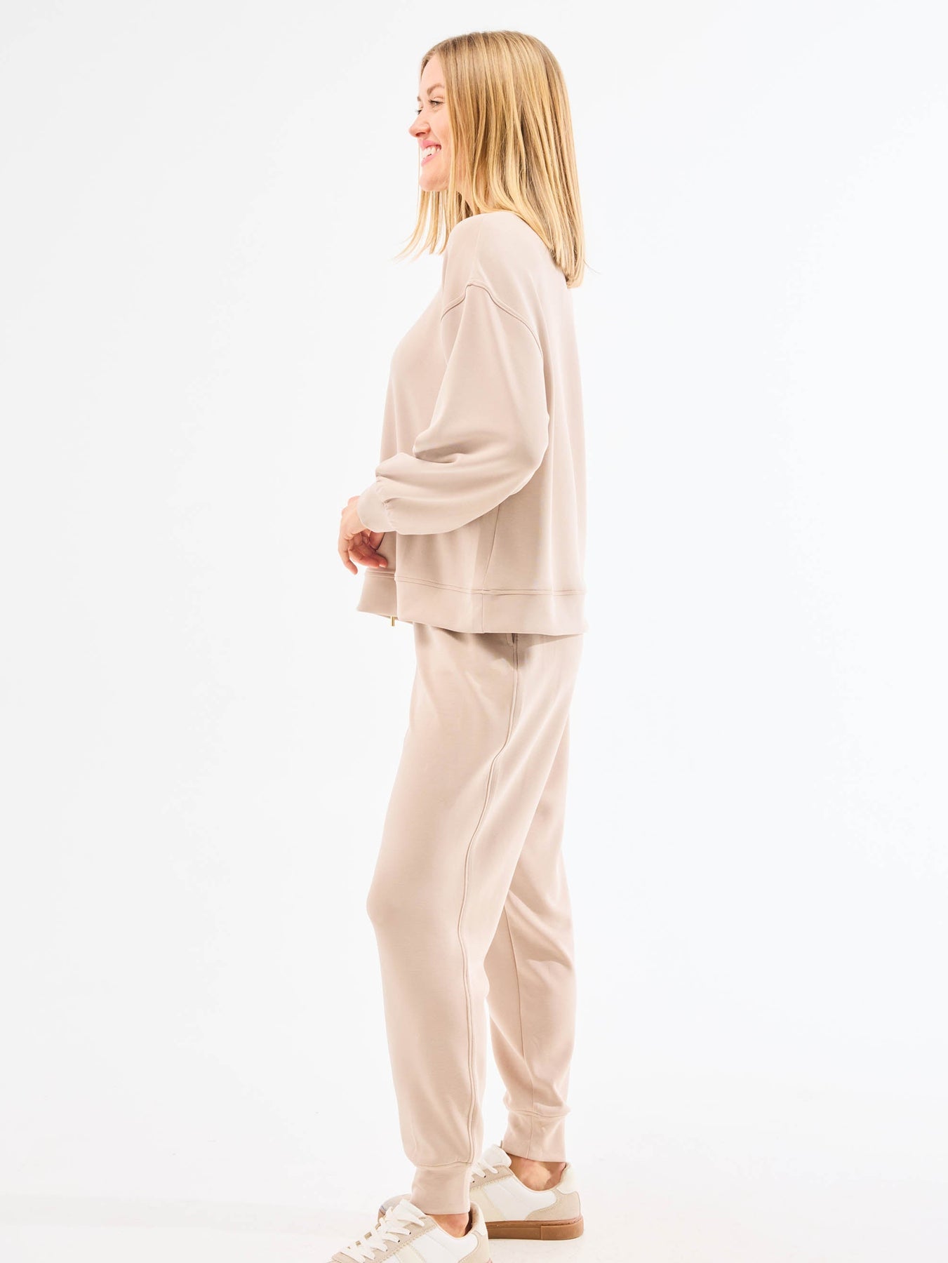 Crafted from our exclusive CloudSilk fabric, a luxurious modal blend designed to redefine comfort. With a whisper-soft touch, airy loft, and gentle stretch, this innovative fabric drapes beautifully while offering the perfect balance of lightweight breathability and cozy warmth.
