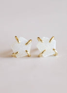 Natural druzy stone cut into shape and set in an 18k gold-plated prong earring over sterling silver, also known as 'vermeil.' Handmade. Nickel, lead, and brass-free.