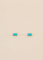 A customer favorite, our turquoise baguette is made for stacking! Featuring a petite polished turquoise stone cut into shape and set in an 18k gold-plated prong earring over sterling silver.