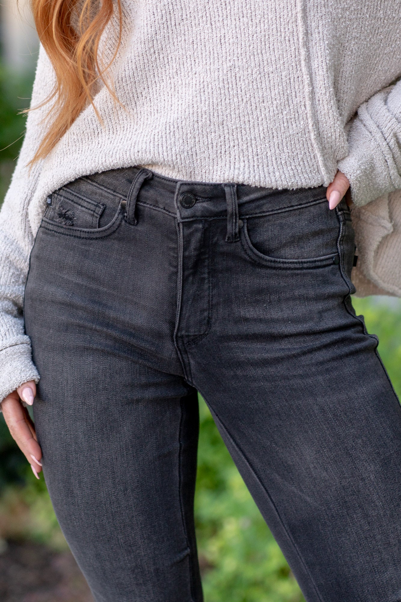 Get ready to rock these Chelsie High Rise Skinny Jeans! Say bye-bye to muffin tops with built-in tummy control technology. Stay sleek and stylish with a zip fly and no distressing. The black mineral wash adds a touch of edge to any outfit.