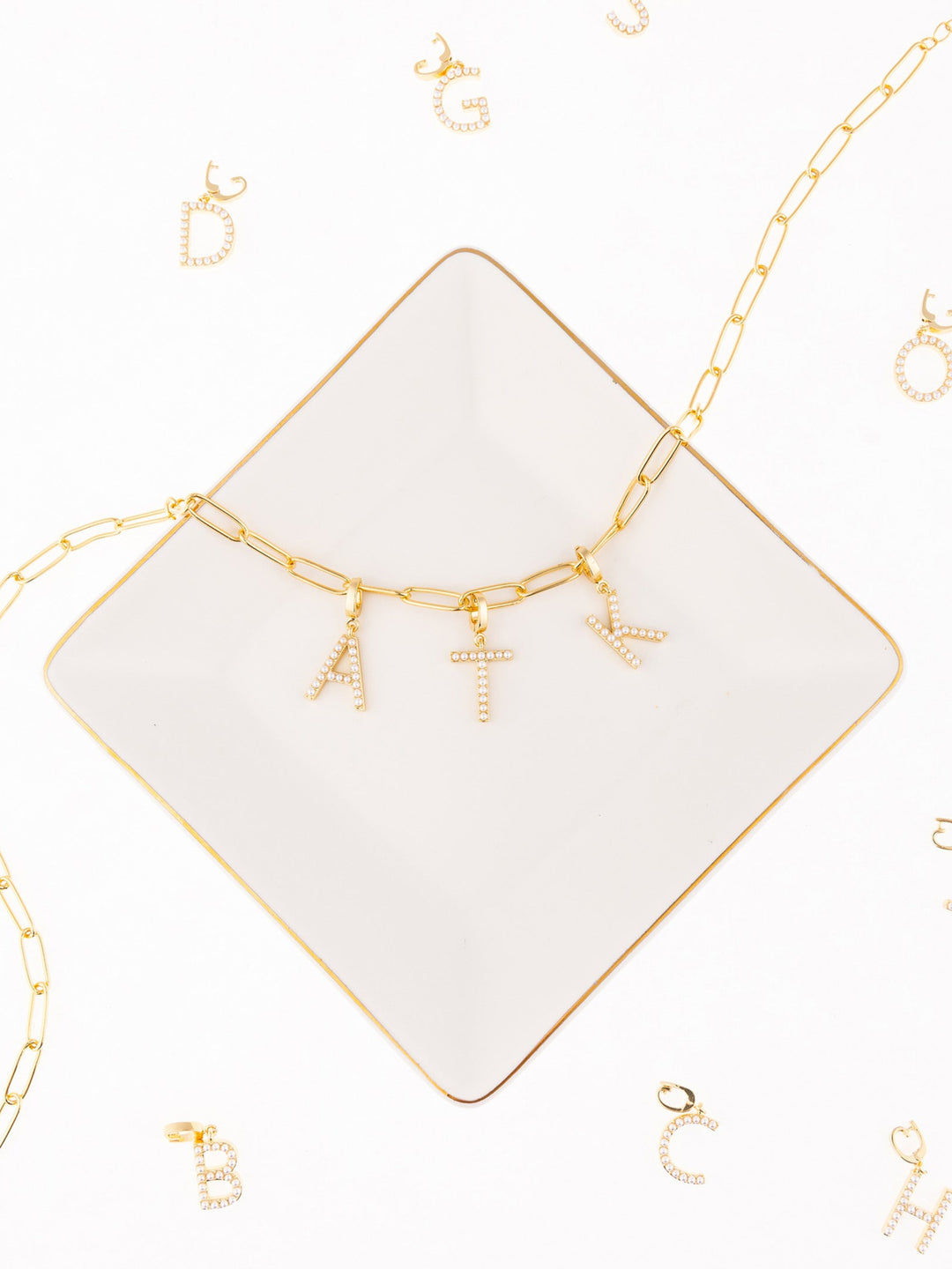 Choose a single initial for a simple, elegant look, or mix and match multiple charms for a personalized statement. With their sleek and timeless design, these Avery Initial Charms are the ultimate accessory for any occasion.