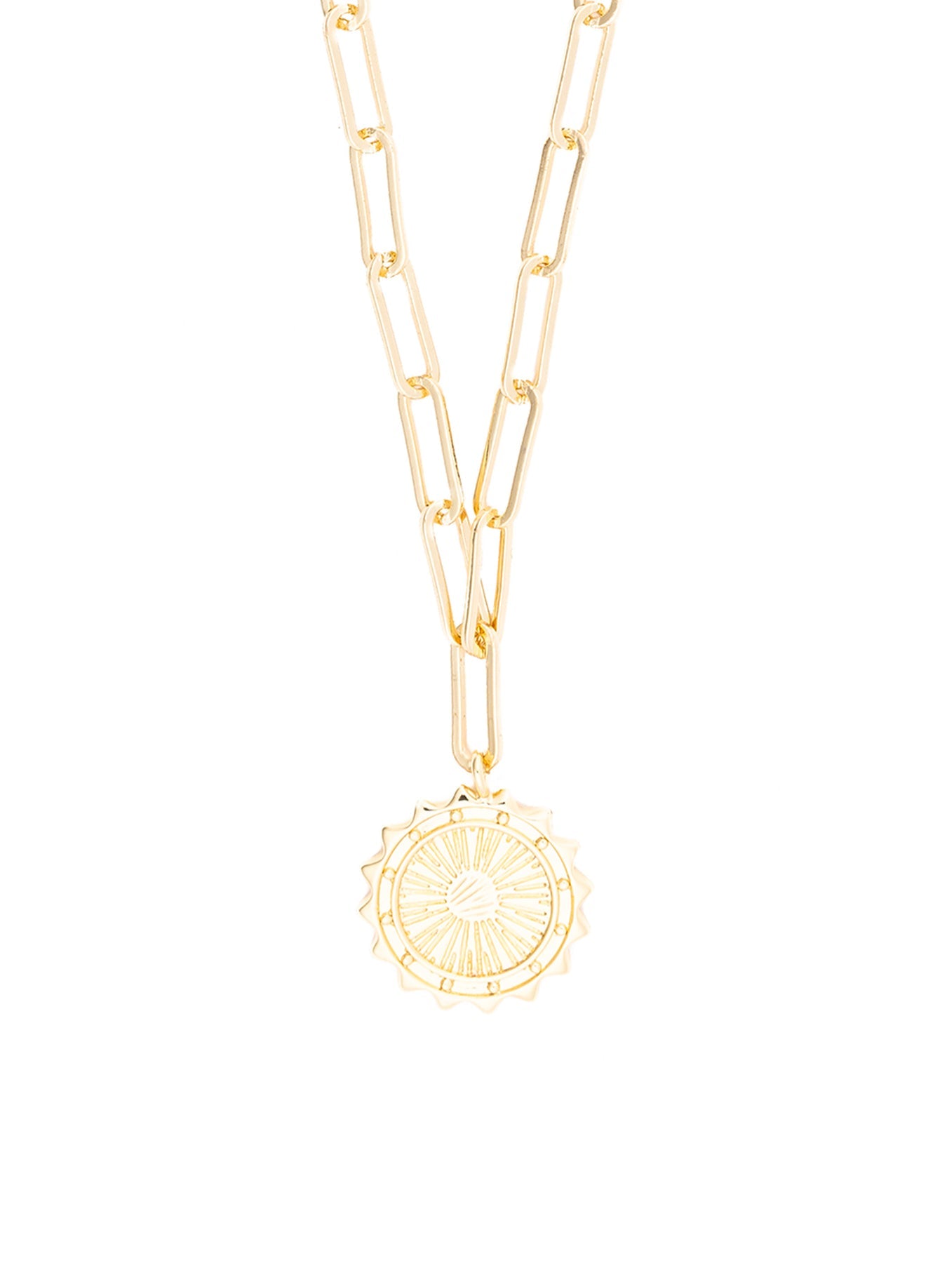 Our Canton Necklace combines timeless charm with a bold, modern twist. Featuring a beautifully detailed coin pendant on a statement chain, this piece adds a touch of elegance and edge to any look. Perfect for wearing solo or layering with other favorites, the design makes it an eye-catching accessory that transitions effortlessly from casual to formal.