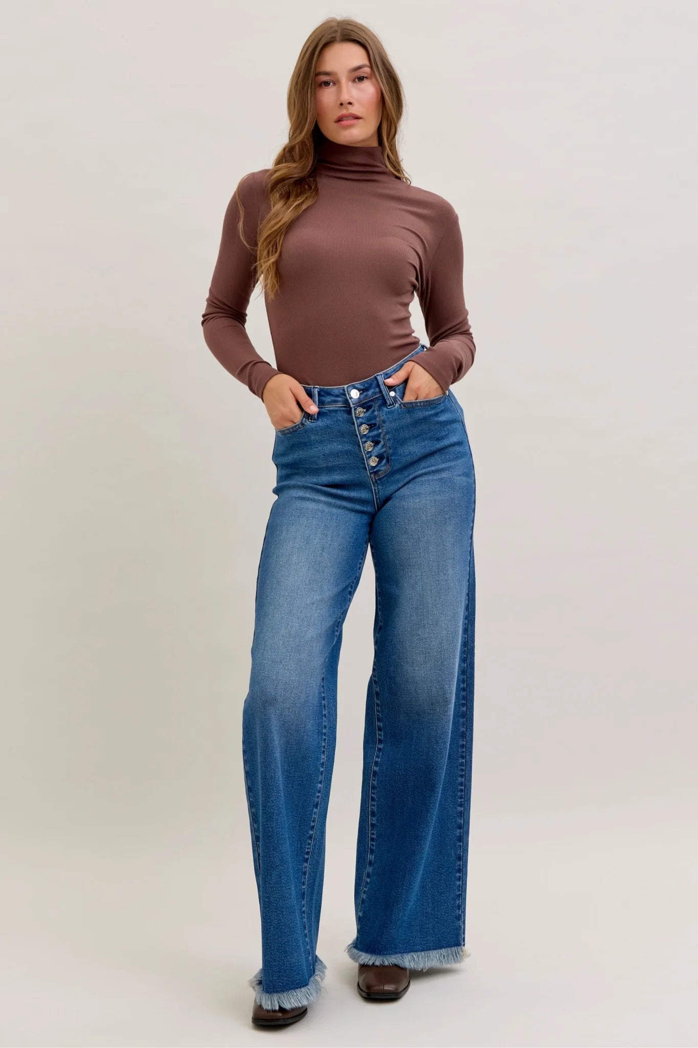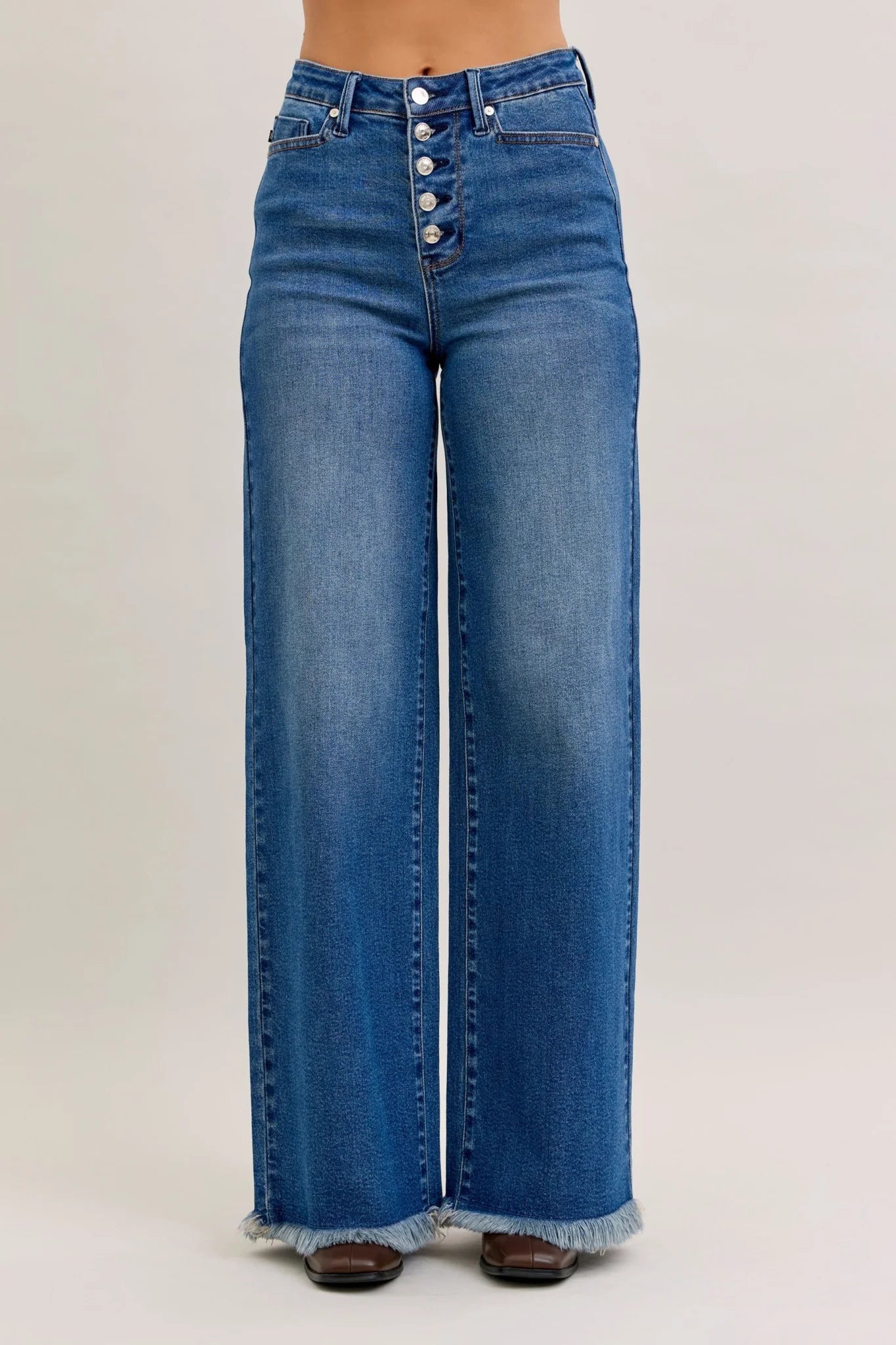 Meet the jeans that make “classic” feel brand new. The Eliana Jeans feature a flattering high-rise fit, column-straight leg, and a sleek button-fly front that adds just the right amount of vintage charm. Back welt pockets keep things polished, while Judy Blue’s signature stretch blend (94% cotton, 5% poly, 1% spandex) makes them comfy enough for all-day wear.