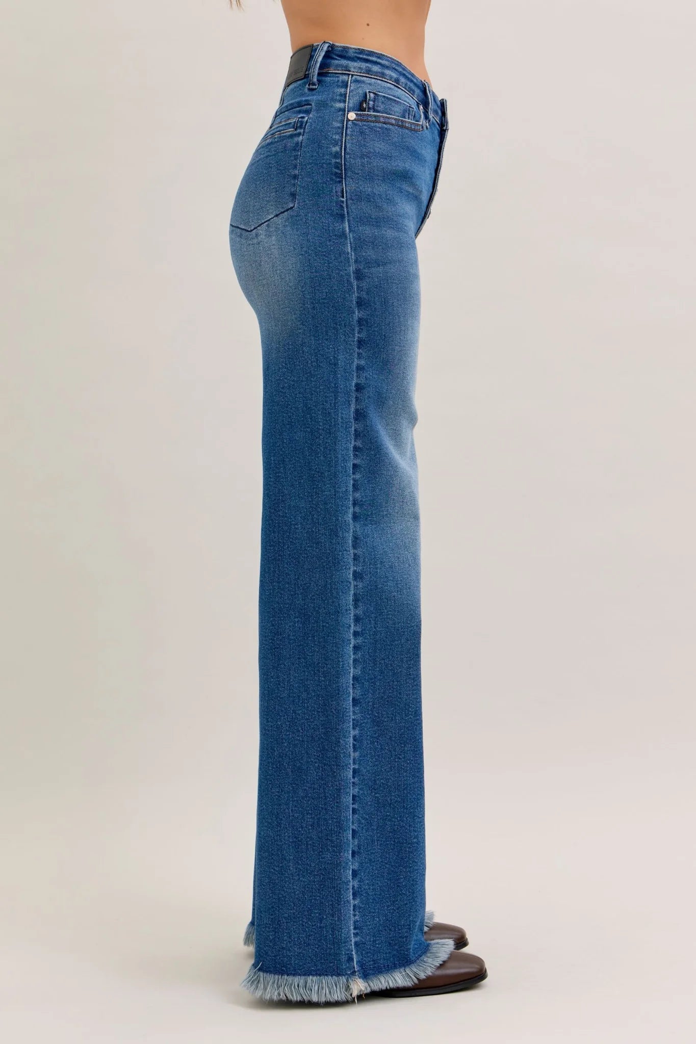 Model is 5’9”, wearing a Judy Blue size 3 (waist 25.5”, hips 38.5”).