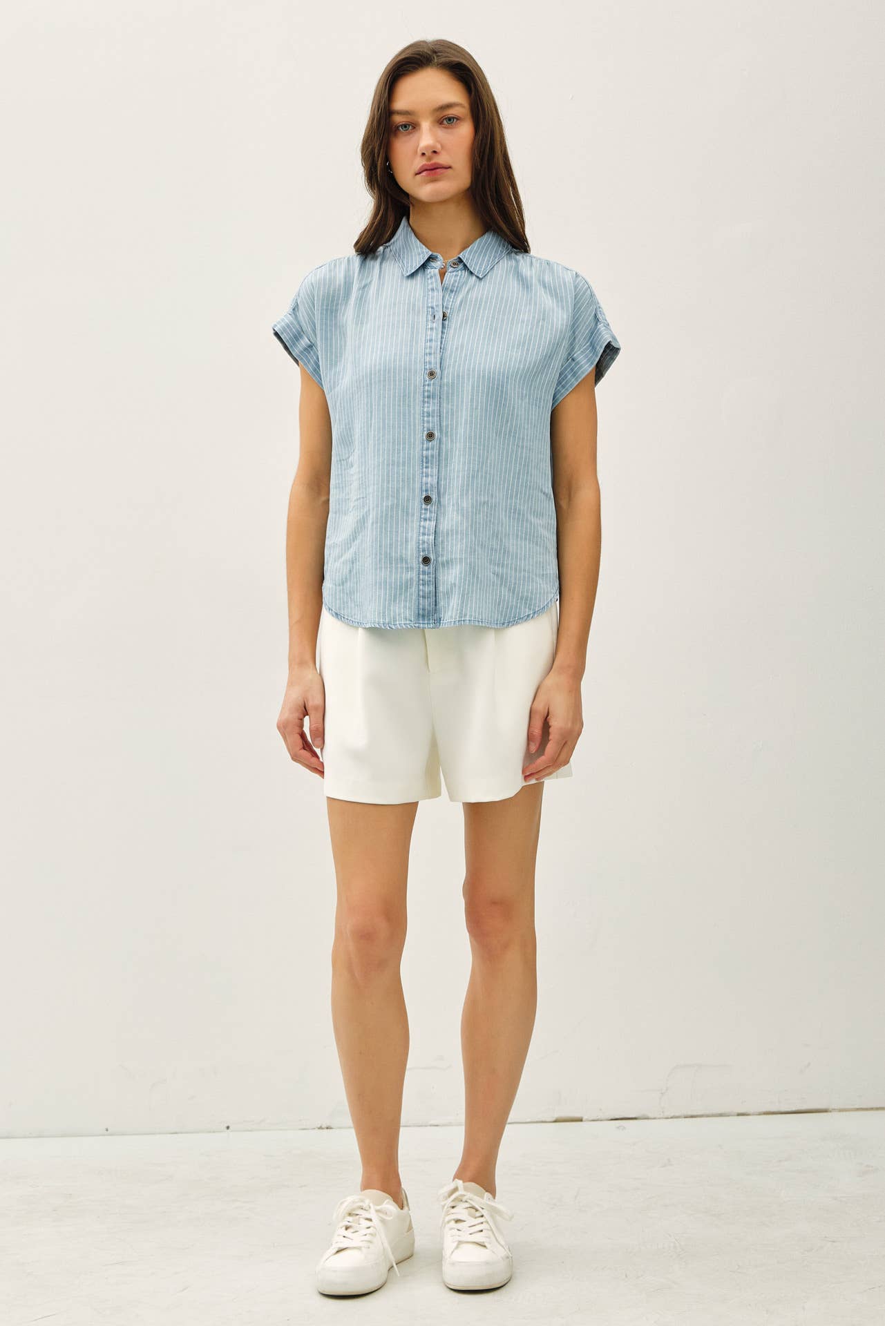 MORE THAN EVER CHAMBRAY BUTTON DOWN TOP