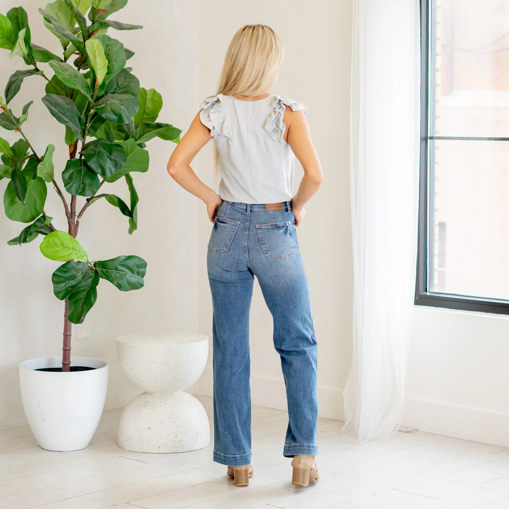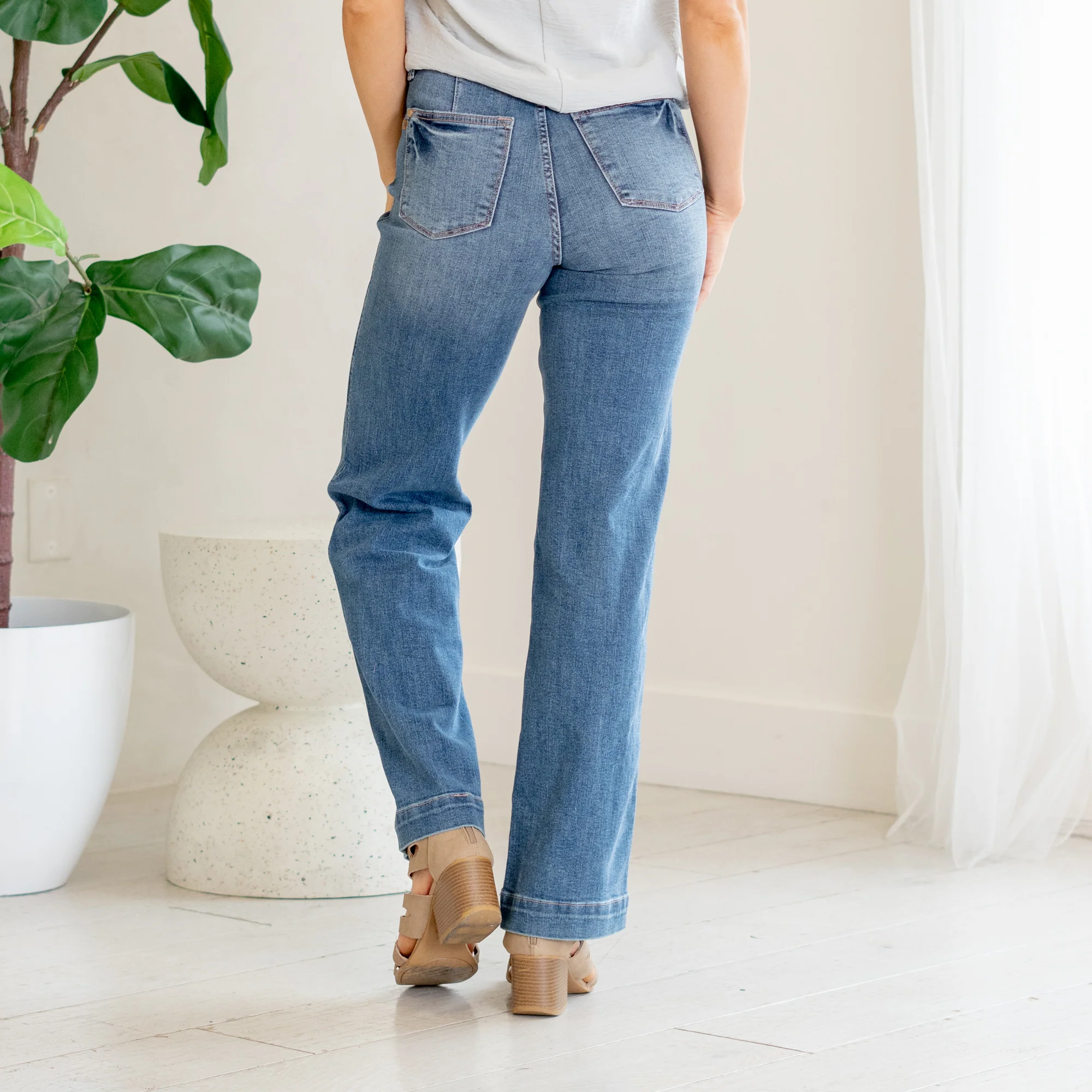 Level up your denim game with EDEN STRAIGHT LEG JEAN 🙌 These medium wash jeans feature a flattering high rise and a classic straight leg for a clean and polished look. Plus, no distressing means a perfect trouser hem every time. Upgrade your wardrobe today!