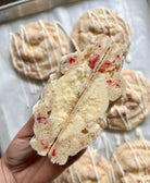 Nothing says summertime bliss quite like strawberries — and this cookie brings that sunshine-sweet flavor in every bite! Our Strawberry Shortcake Cookie is baked with soft, buttery dough chock-full of strawberry and white chocolate chips, then stuffed with creamy vanilla buttercream and finished with a drizzle of white chocolate for the perfect touch of sweetness.