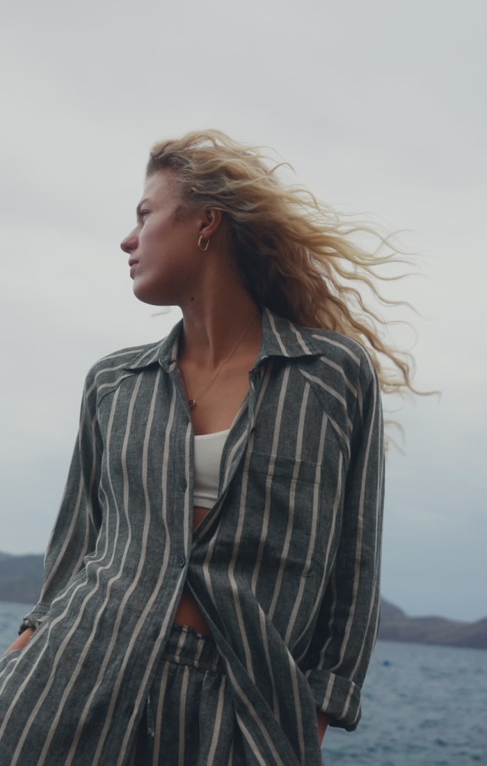 Designed with a relaxed fit and classic stripes, this top is endlessly versatile. Wear it buttoned up, layered over a tank or bralette, or tossed on as a chic cover-up over swimwear. From beach days to brunch dates, itâs the kind of piece that makes getting dressed feel effortless.
