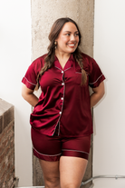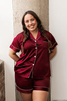 Burgundy Satin Pajamas Shorts Set (Online Exclusive)