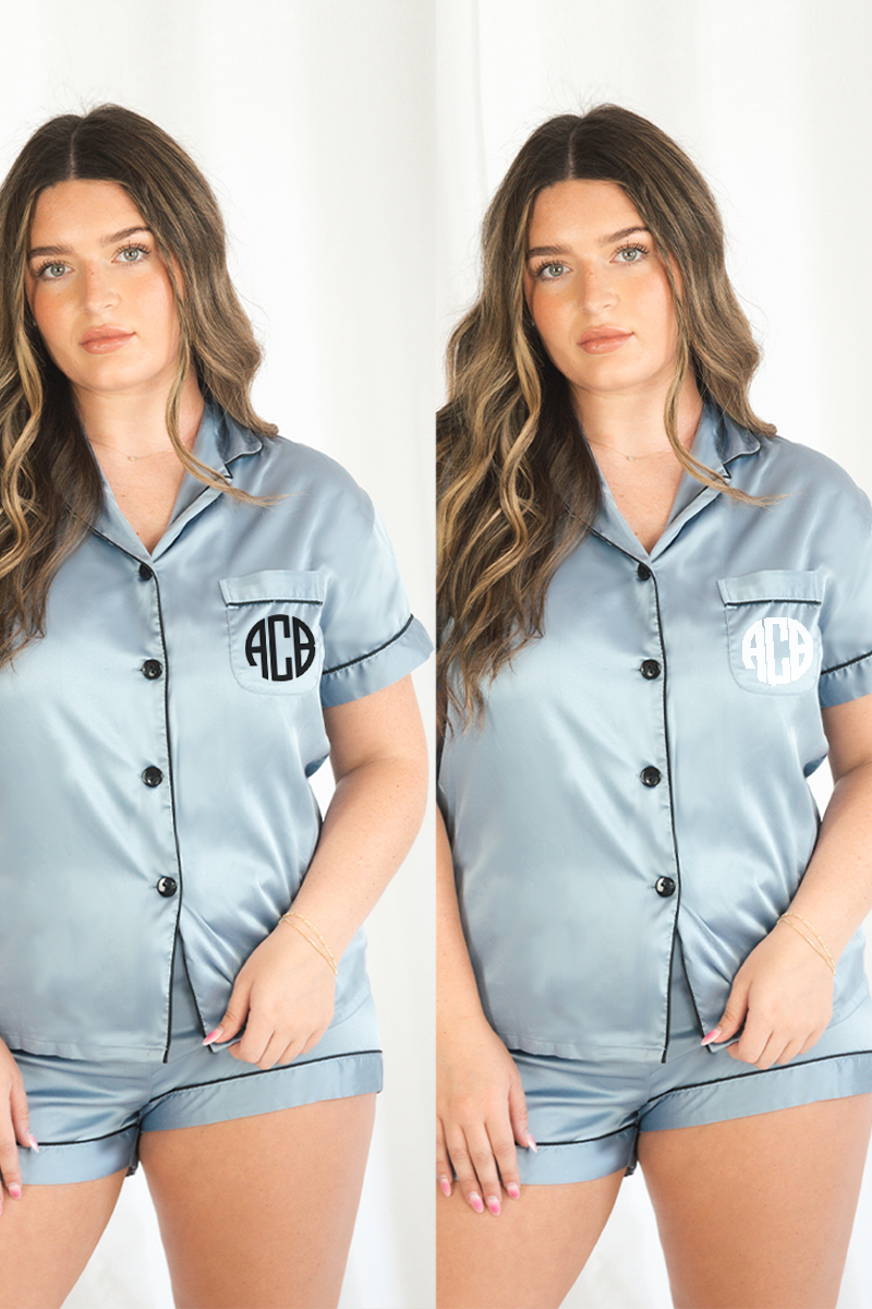Baby Blue with Black Trim Satin Pajamas (Online Exclusive)