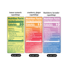 Current flavors in the gift-box: strawberry rose, blackberry lavender, mango chili, blueberry ginger, cranberry ginger, lemon turmeric