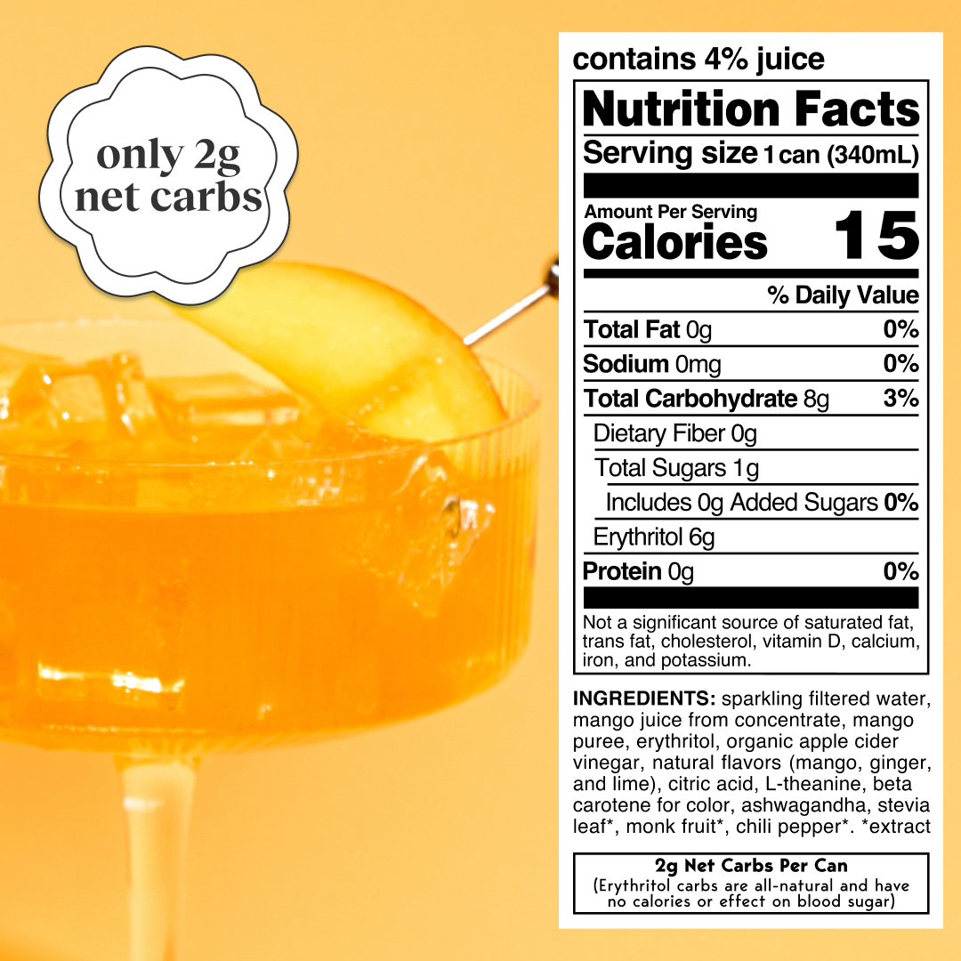 Discover your daily dose of sunshine with mango glow. A vibrant blend of golden mango, zesty spices, and glow-boosting botanicals. This tropical sparkler delivers juicy flavor and feel-good energy in every sip. It's refreshing, radiant, and made for your summer glow-up.