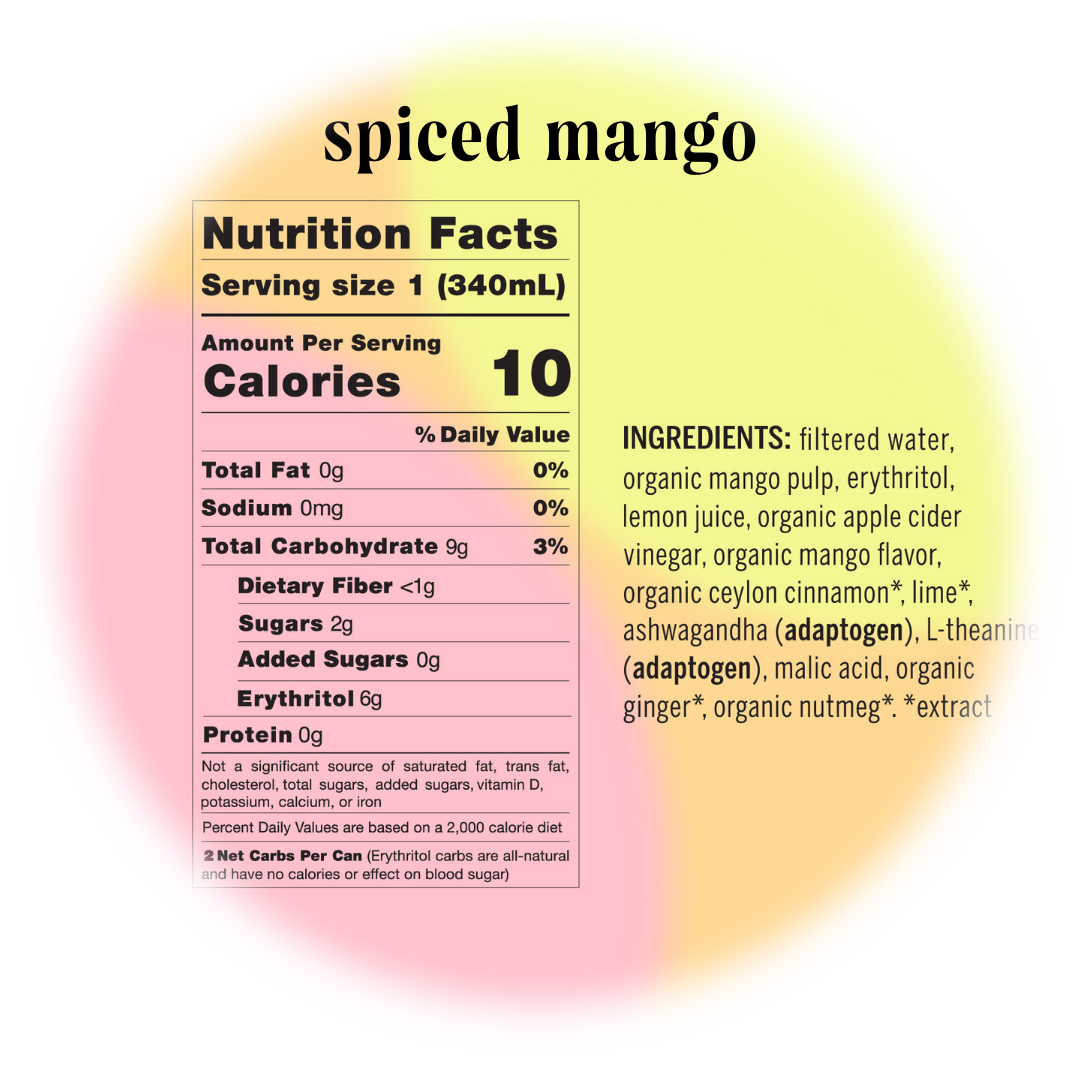 Current flavors: blueberry ginger, tulsi lemon, spiced mango, cherry hibiscus, lychee mint, and Lemon Turmeric.