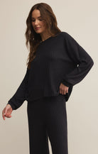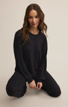 Silky soft with a barely-there feel, this long sleeve crew is made for lounging or layering. Its relaxed fit and luxe rib knit give it a balance of comfort and style you’ll wear on repeat.