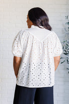 Stay stylish and chic in our I'll Let You Know Eyelet Lace Blouse. This blouse features a unique eyelet lace design, a mock neckline, and functional front button closures. The balloon sleeves add a touch of whimsy, while the pleat details and front lining provide a polished look. Perfect for any occasion, this blouse will ensure all eyes are on you!