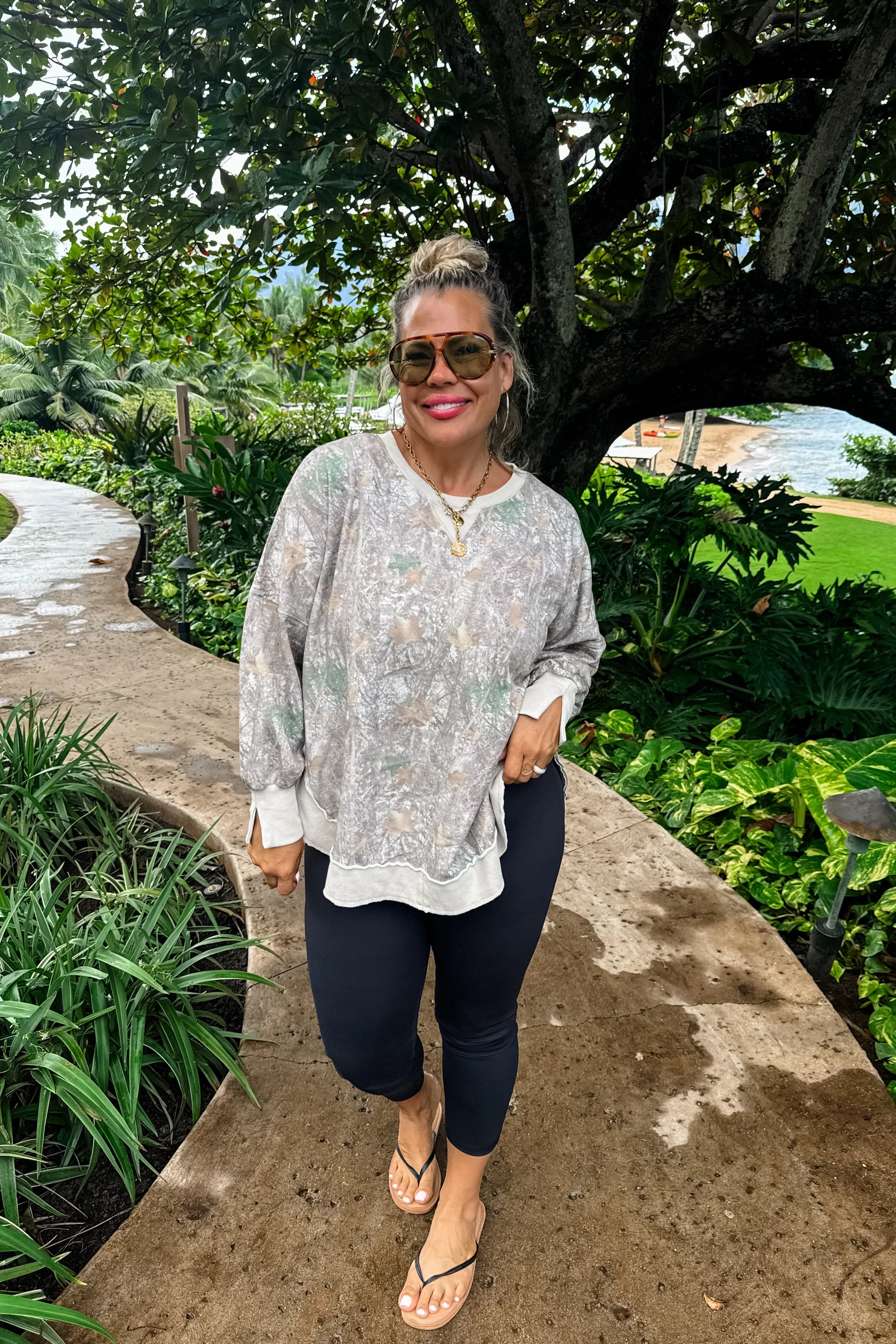 The perfect washed cotton flattering sweatshirt that everyone needs! Faded “vintage” colors. Features flattering rounded front and back hem with side slits!