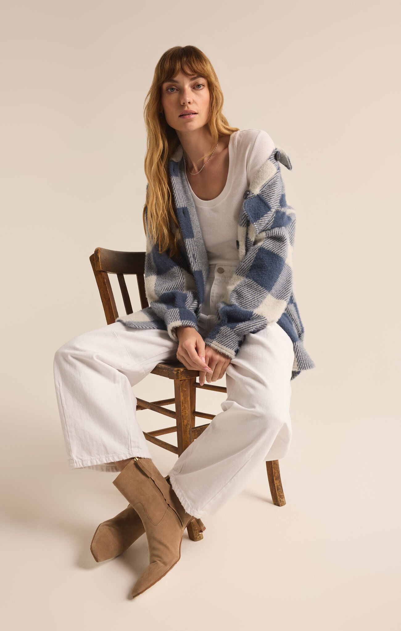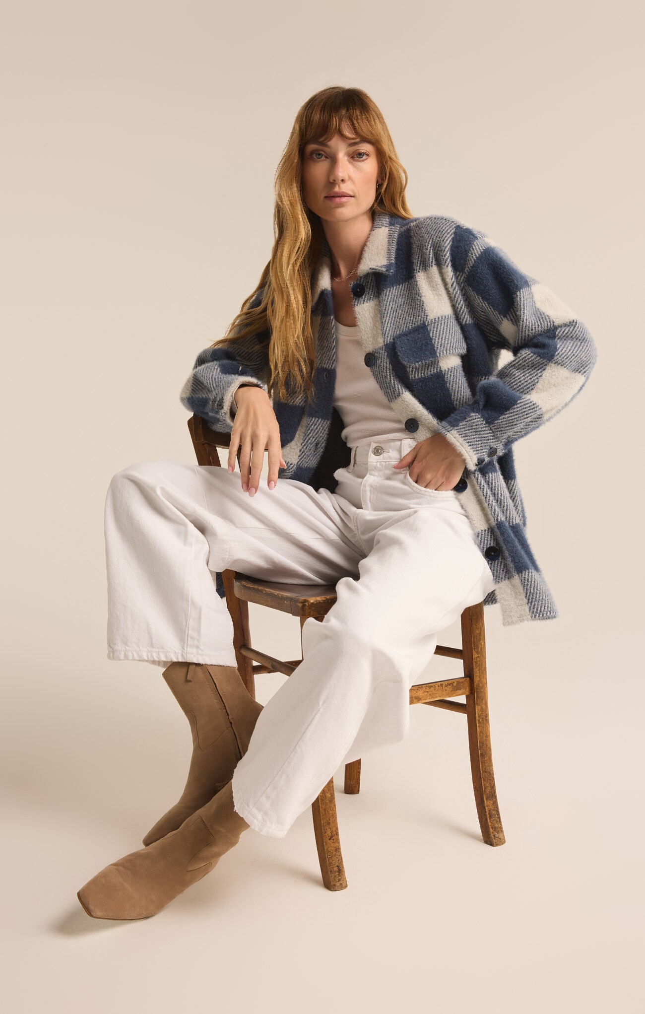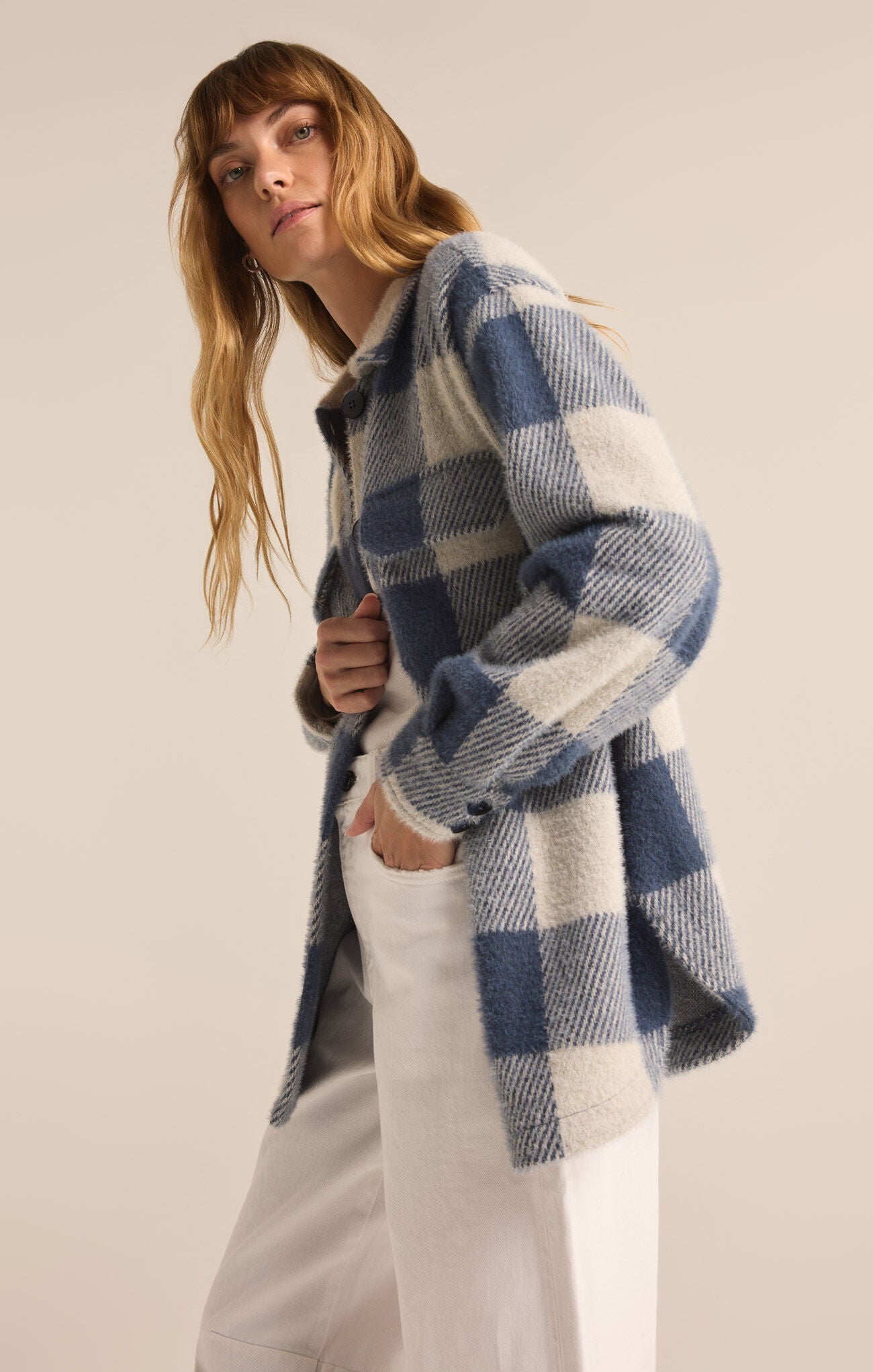 Embrace the cooler weather in our buffalo check jacket, crafted from heavyweight sweater knit for maximum warmth and style. This piece features a classic collared design, long sleeves, a button front, and flap pockets, and is perfect for adding a rustic chic element to any outfit.