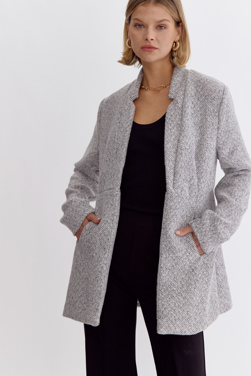 Be forever chic and cozy with our Forever By Your Side Jacket. Heathered fabric provides a timeless look, while its medium-weight ensures warmth without sacrificing style. Complete with an inverted collar and functional pockets, this jacket will stay by your side through any adventure.