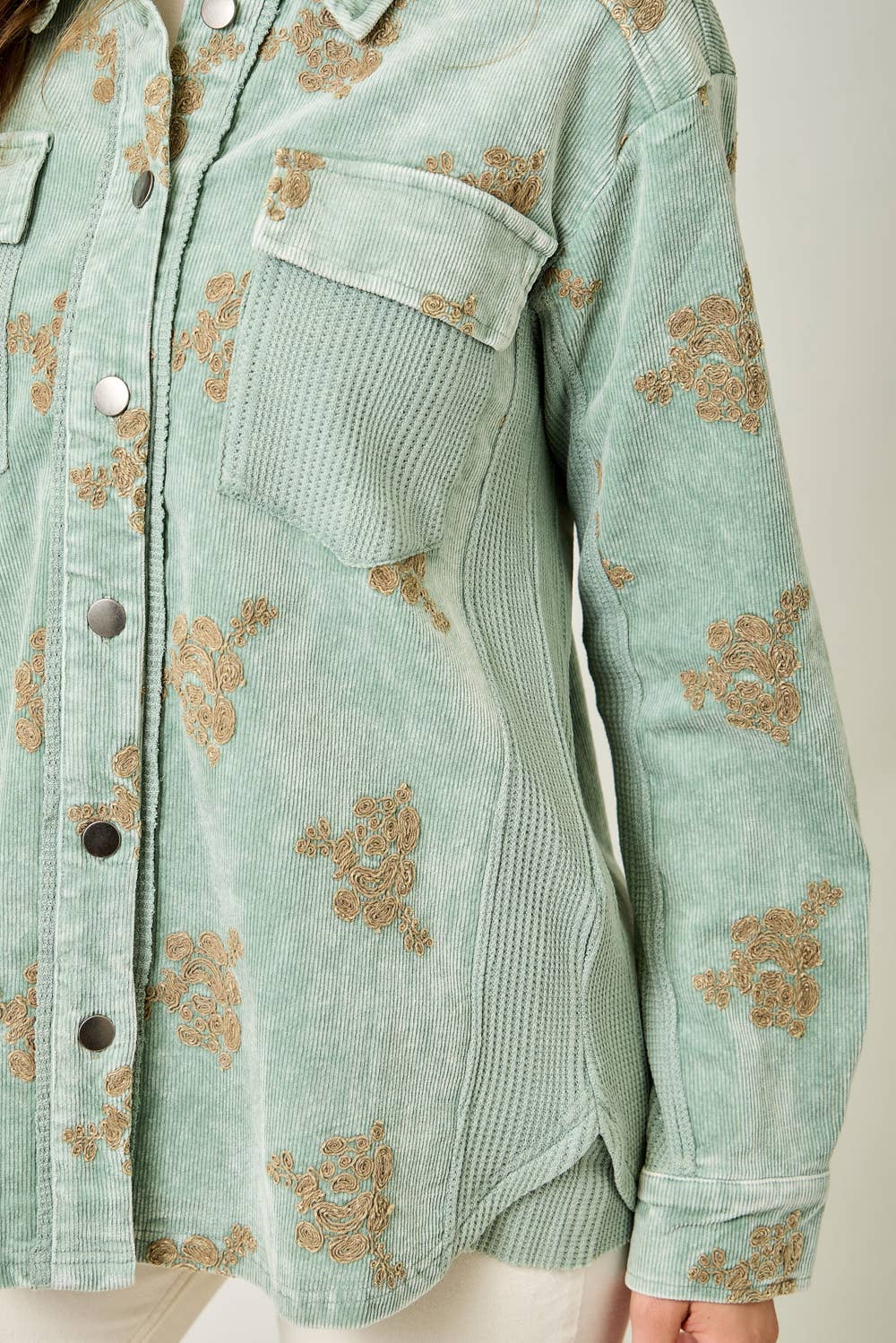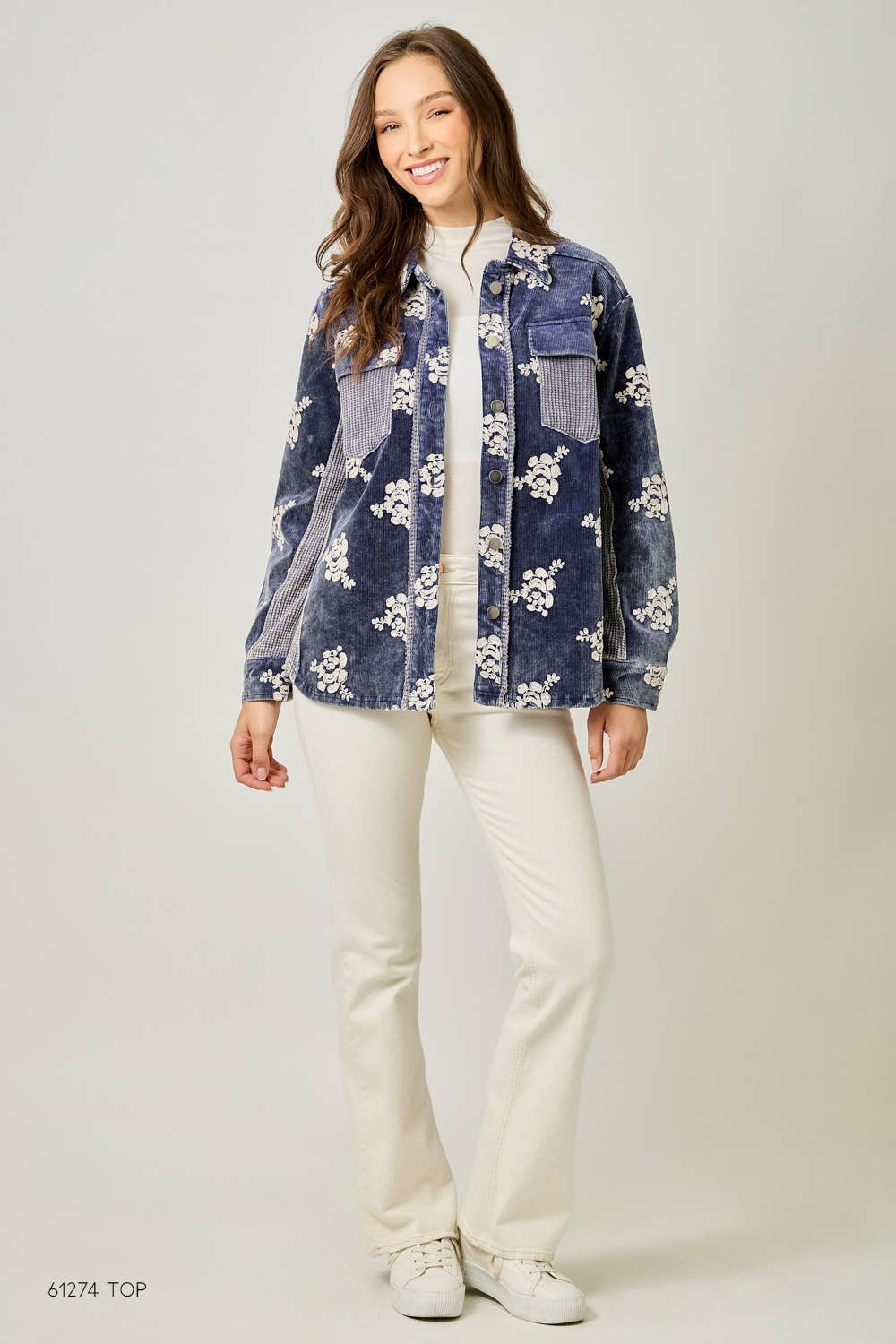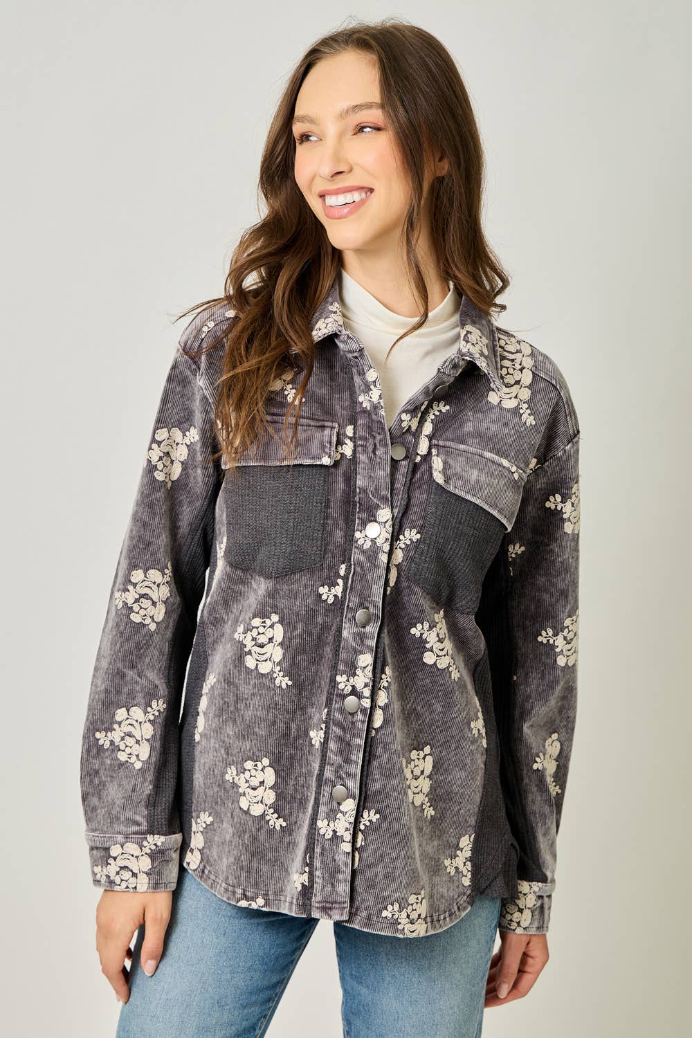 Who said corduroy was just for professors and old library books? Not us, babe. This washed corduroy jacket is bringing major cool-girl energy with embroidered details, chest pockets, and that hi-lo hem that screams “I just threw this on and look amazing.” 💁♀️