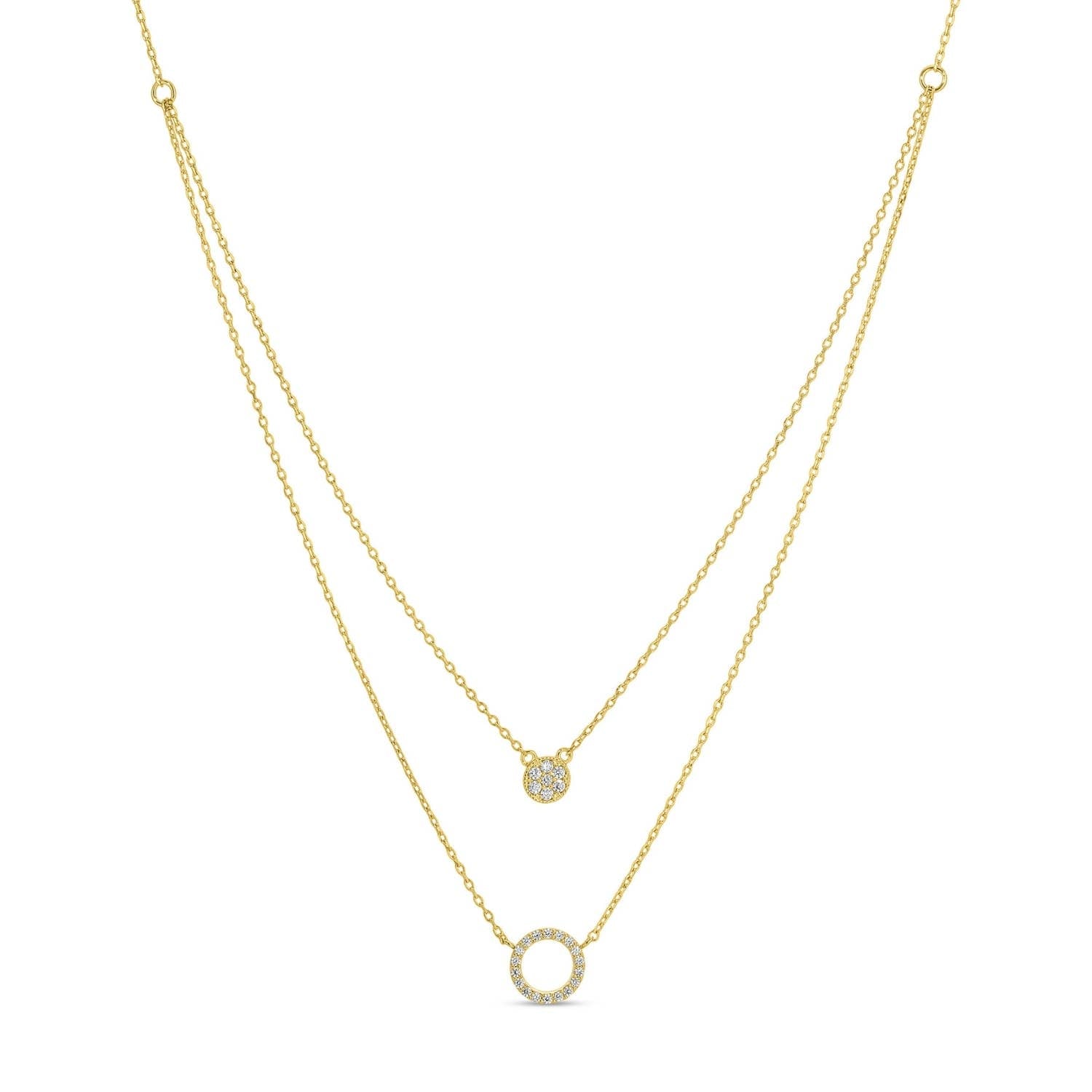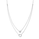 Double the charm, endless sparkle. The Round Pavé Double Appeal Necklace features two delicately layered chains, each adorned with a radiant round pendant encrusted with shimmering pavé cubic zirconia.