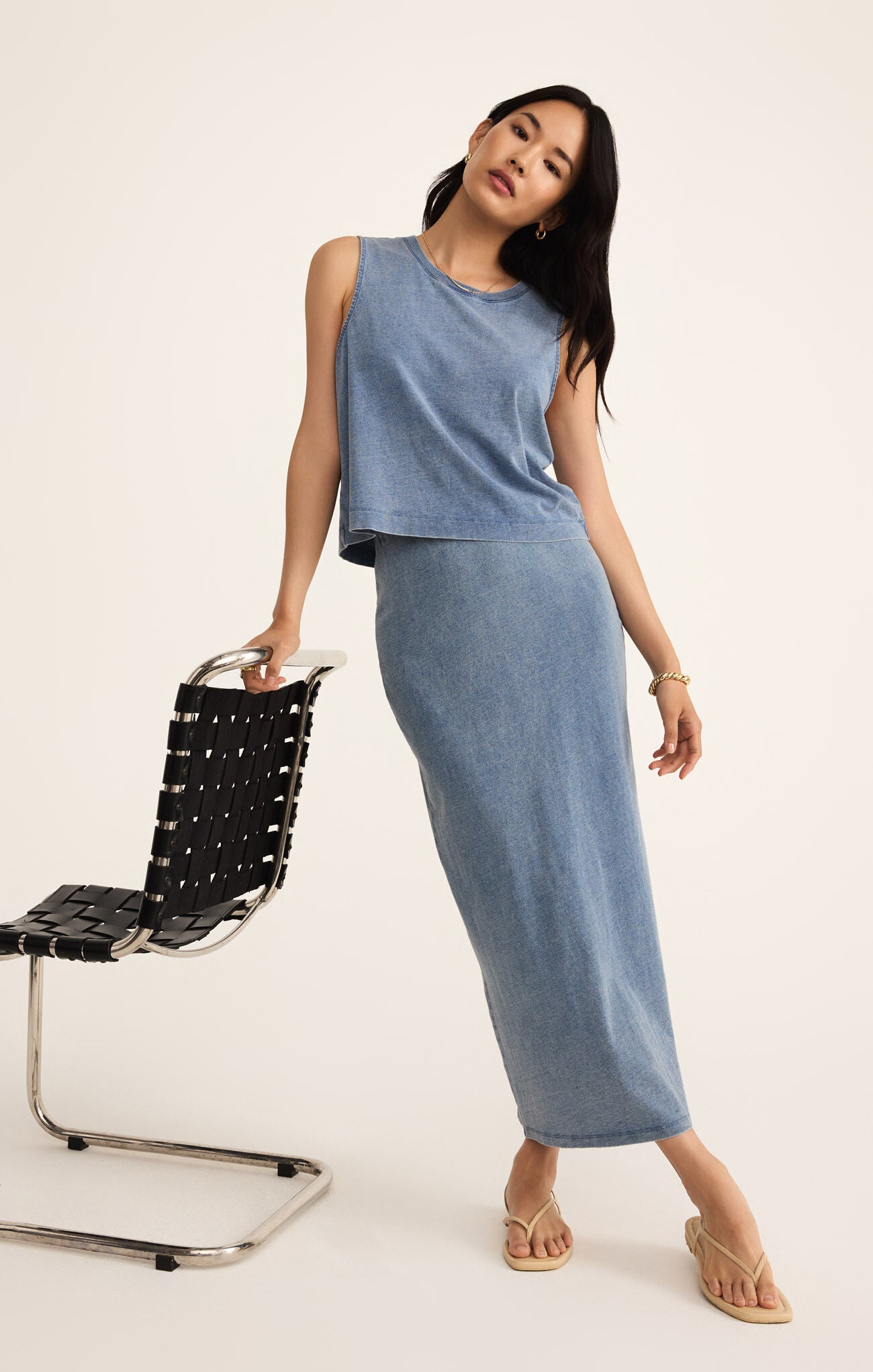 Effortlessly stylish, this body-skimming midi skirt combines a classic denim look with the softness of cotton jersey. Designed with an elastic waistband for a comfortable fit, it’s a versatile essential you’ll reach for again and again.