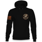 The Allegiance Blue Collar Forged Hoodie honors hard work, grit, and American pride. The bold back graphic shows skeletal hands gripping a wrench and hammer, crossed in front of the American flag. While the design is framed with the words Allegiance and Blue Collar Forged, gears, lightning bolts, an anvil, and a star complete the look. A smaller version of the artwork appears on the front, and the American flag also rides proudly on the sleeve.