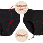 Hi, I’m the Heavy High Waisted with an Extended Gusset. If I could, I would have called myself The Heavy Heavy High Waisted. I’m the exact same style as your favorite Heavy High Waisted Period. but with one big difference - I have an extended absorbent gusset that goes all the way from the top of the front to the top of the back. In other words, my absorbent panel is maxed out to as far as you can take it, so you can have even more confidence in going leak-free. I’m perfect for those first few heavy days when you might be back-flowing, front-flowing, or everywhere-flowing. It’s okay. We’ve all been there. I’m super soft, made of comfy cotton, and here to give you the super safe feeling that we all want on our heavy days.