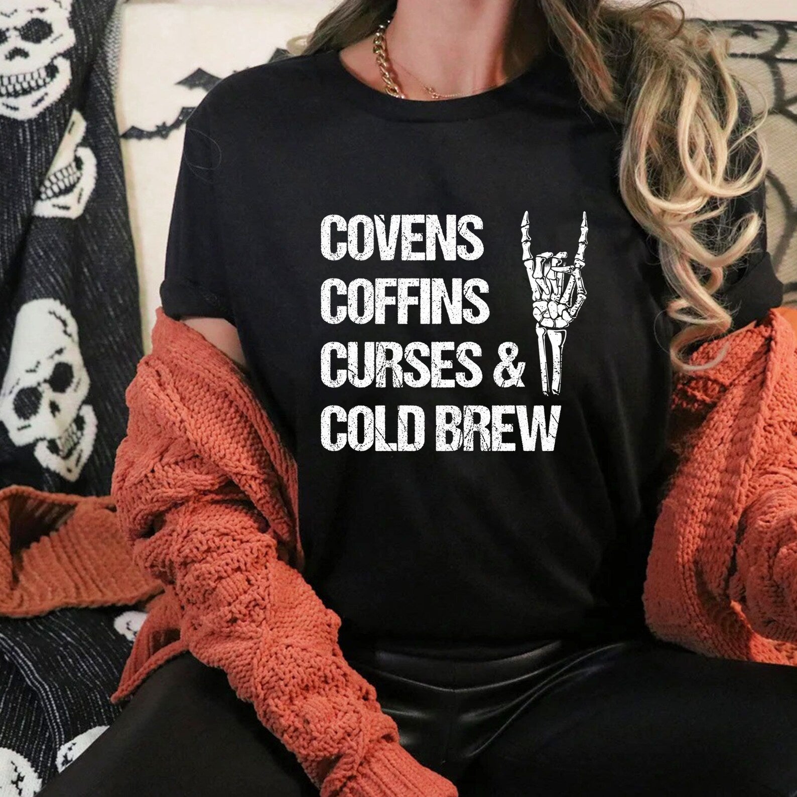 Covens Coffins Curses Cold Brew Graphic Tee (Vintage)