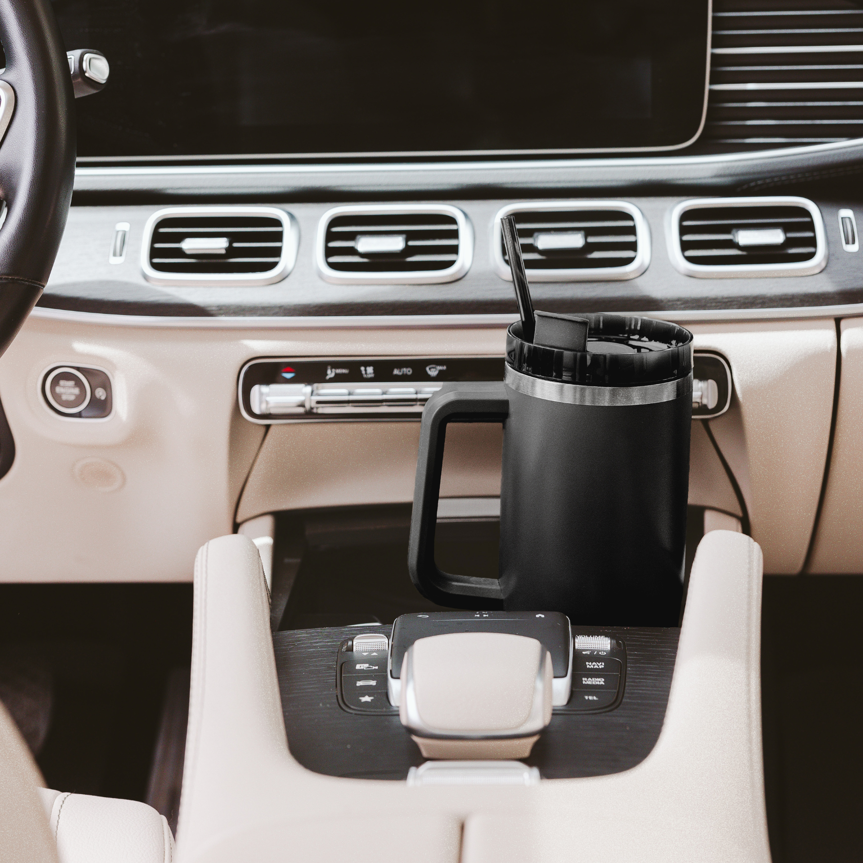 Meet your new hydration hero. Our tumblers are the perfect companion for your busiest days, with an easy-carry, comfort-grip handle and a narrow base that fits most cup holders. Perfect for any occasion, our premium stainless steel tumbler holds 40oz of your favorite beverage, keeping it hot for up to 8 hours and cold for up to 24 hours. The straw and lid are BPA-free - plus, our functional lid features a sliding sip cover with three positions: a straw opening, a drink opening, and a full-cover top. Cheers to you for staying hydrated!