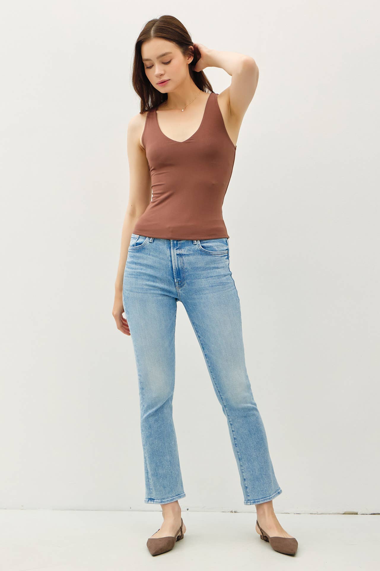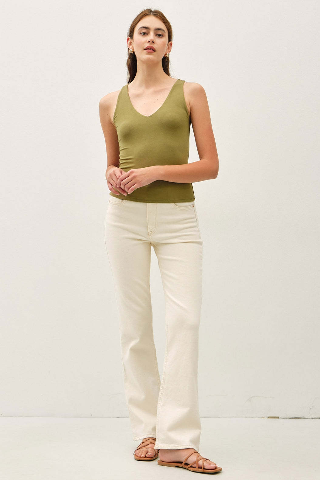 🤍 V-neckline = flattering + feminine
