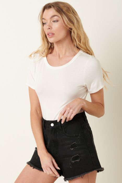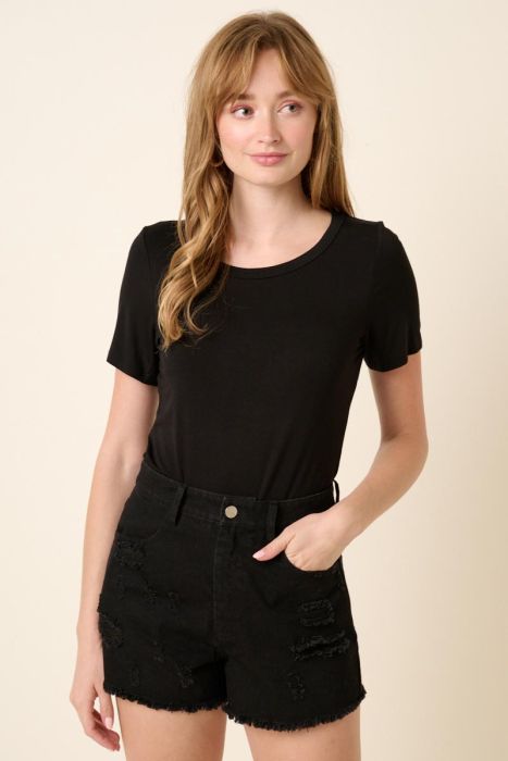 This ultra stretchy and soft bodysuit is a MUST have! It's a #1 boutique seller and the best layering piece. This bodysuit also features a short sleeve style - it's such a classic! You need this for a night on the town or casual day in. We love the lightweight bamboo cotton for wearing all day long. Pair with jean shorts, skirts, or jeans for a stylish look!