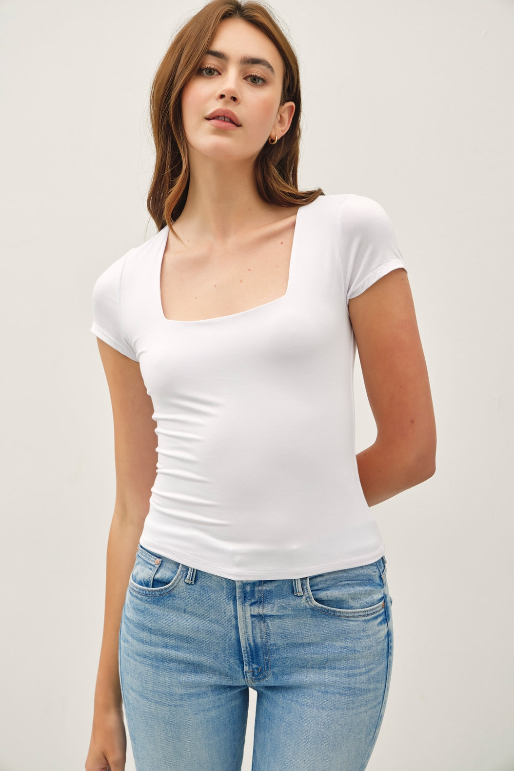 🤍 Square neckline = modern + ultra-flattering