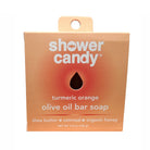 Energize your skincare routine with the Shower Candy Turmeric Orange Olive Oil Bar Soap, a brightening, eco-friendly alternative to liquid body wash. Unlike bottled washes that are mostly water, this solid bar is packed with skin-loving ingredients for a nourishing cleanse that saves one plastic bottle per bar.