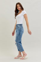 The subtle destroy details add that perfectly undone vibe, while the structured-but-comfy stretch blend keeps them wearable all day long. Easy to dress up with heels or keep casual with sneakers, these crops are the kind of denim that instantly elevates your everyday look.