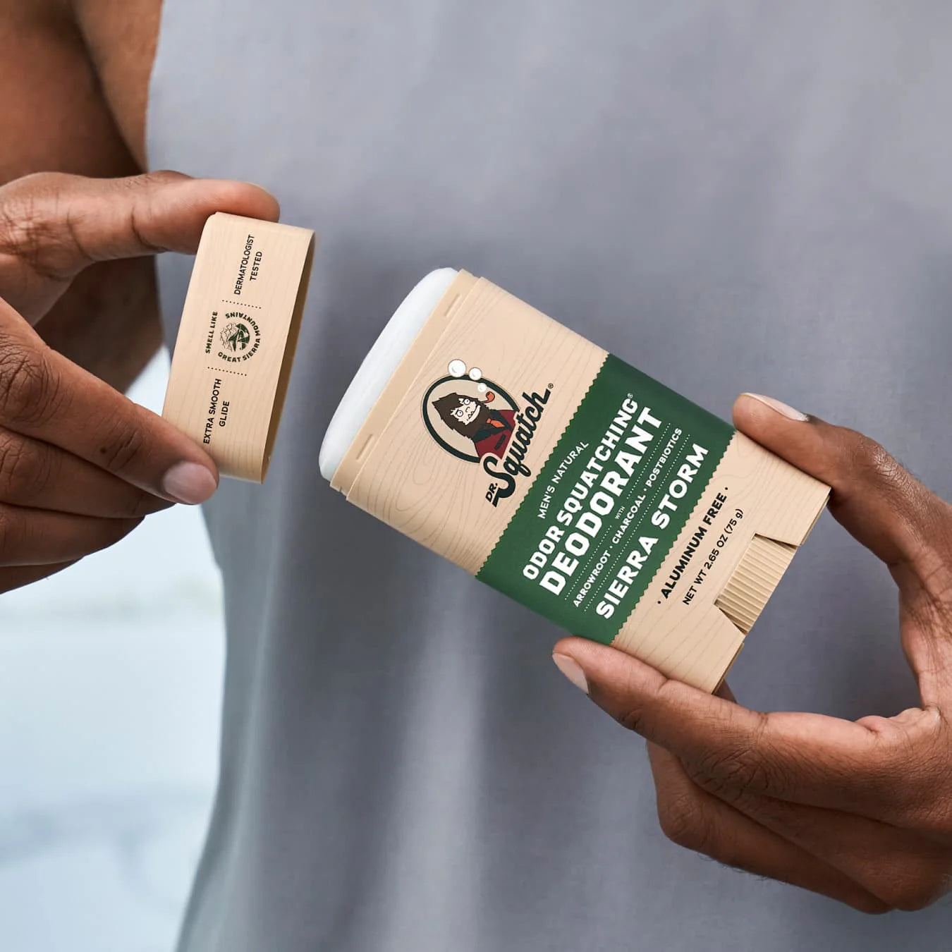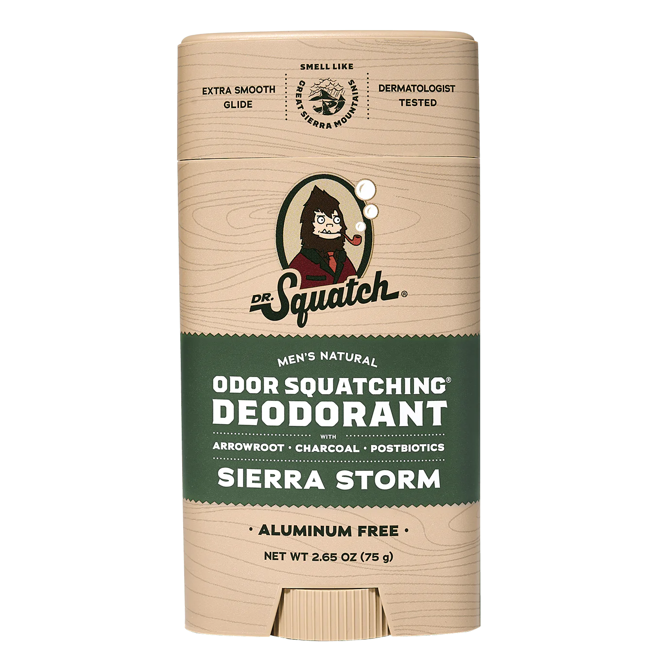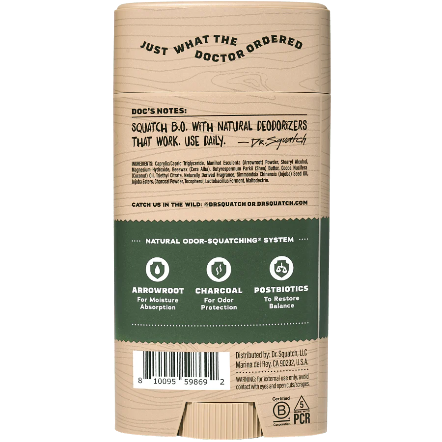 El desodorante natural para hombres Dr. Squatch te mantiene fresco para que puedas continuar con tu día con confianza, sin importar a dónde te lleve. Nuestro sistema Odor-Squatching® combate las fuentes potenciales de BO desde todos los ángulos con poderosos desodorantes naturales, como carbón en polvo para bloquear el olor, probióticos que ayudan a prevenir el crecimiento de bacterias que causan el mal olor y arrurruz en polvo para absorber la humedad. Con una aplicación de deslizamiento suave y humectantes nutritivos para la piel como jojoba y manteca de karité, nuestro desodorante es suave para tu piel y te deja a ti y a tus axilas listos para cualquier aventura.